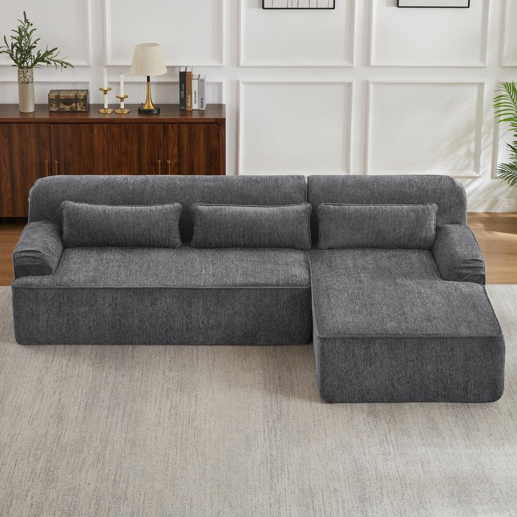 Experience immediate comfort and modern elegance with this chenille L-shape oversized sectional sofa. Designed for minimalist spaces, apartments, reception areas, and living rooms, it blends luxurious texture, smart support, and effortless setup—perfect for those who want style and convenience without the fuss.