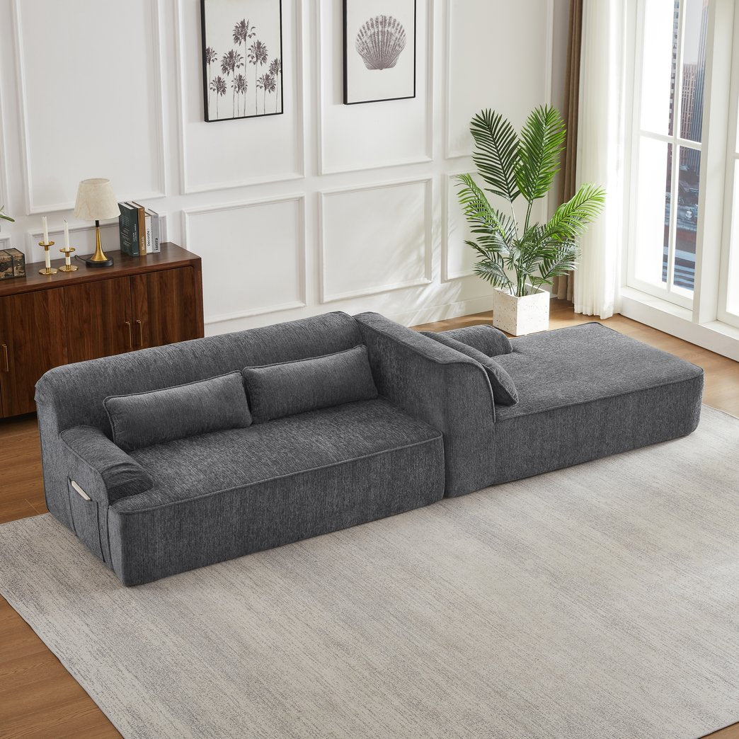 - Design: The sofa features a unique segmented design with a tufted surface, providing both modern aesthetics and excellent support. Its versatile shape allows for flexible arrangement to fit various room layouts.