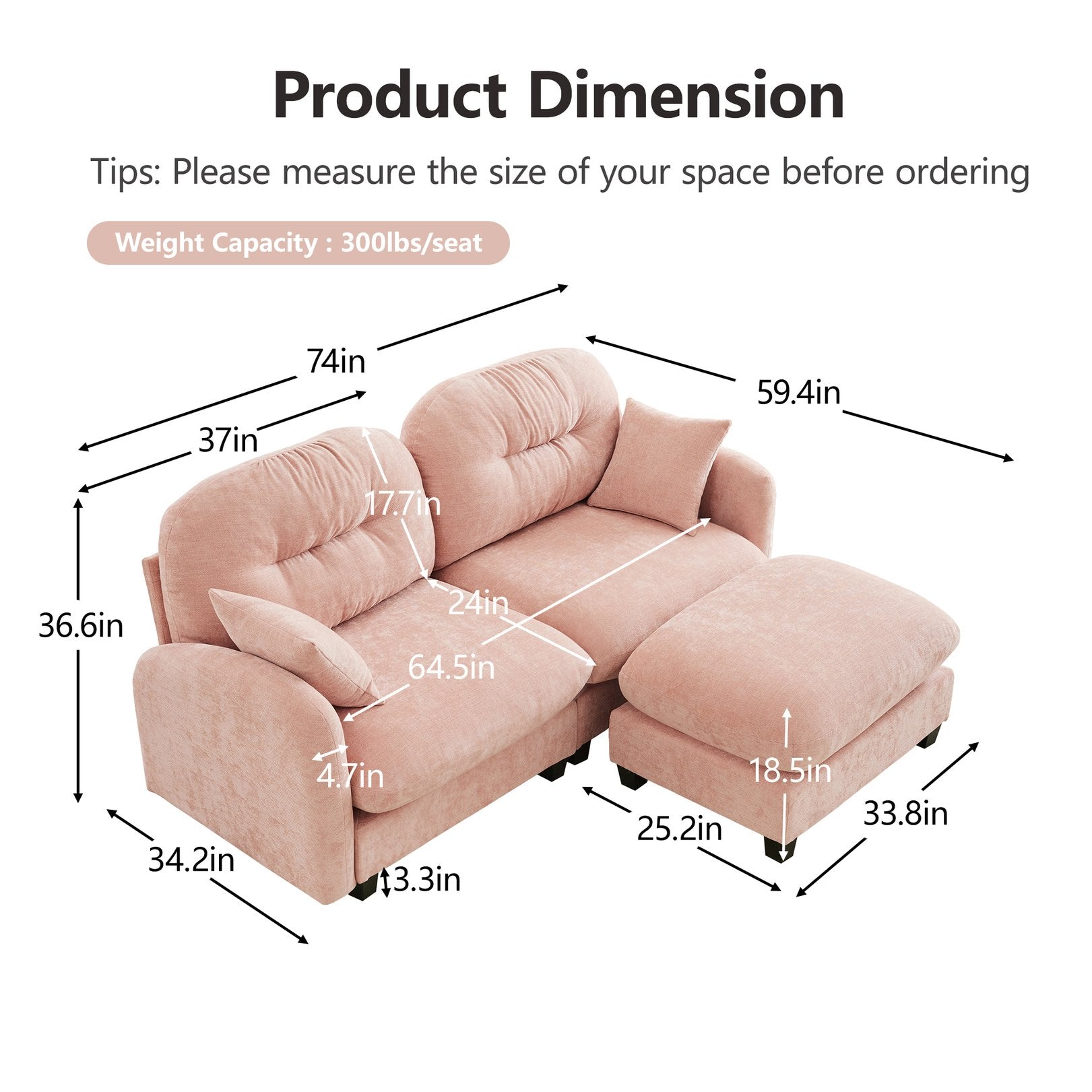 Sink into cloud-like comfort with this modular L-shaped sectional and ottoman, designed for flexible living spaces from cozy reading nooks to spacious living rooms. Upholstered in soft, durable chenille with a tufted pleated backrest and high-density foam seating, this sofa combines elegant minimalist styling with everyday practicality. The movable ottoman and configurable sections let you customize seating arrangements to suit changing needs while maintaining a refined, cohesive look.