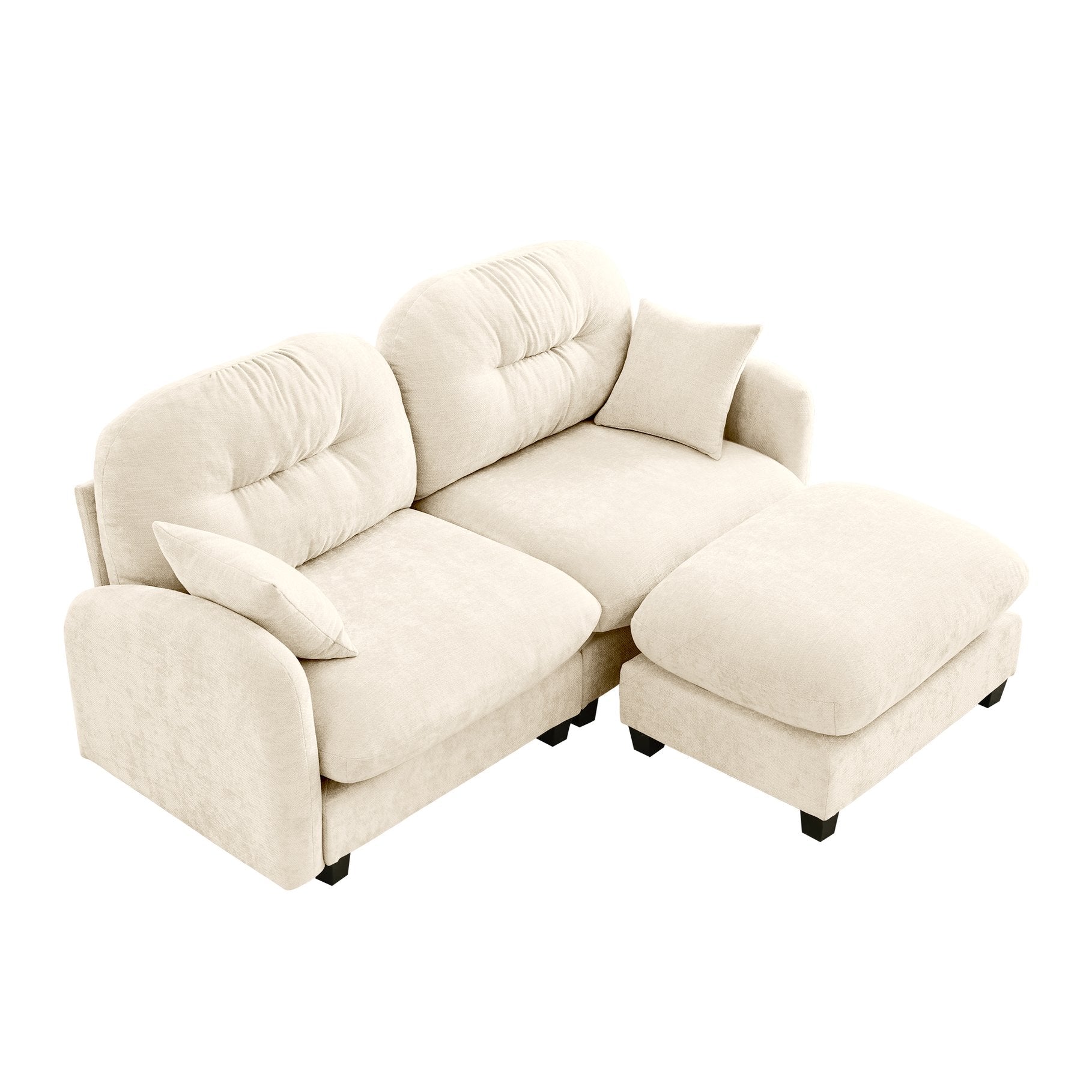 Experience cloud-like comfort and contemporary style with this modular L-shaped sectional and ottoman. Upholstered in soft, durable chenille with a tufted pleated backrest and high-density foam seating, the design blends elegant minimalism with ergonomic support. Its flexible configuration and removable ottoman make it ideal for living rooms, bedrooms, reading nooks, and apartments where adaptable seating and a refined look are required.