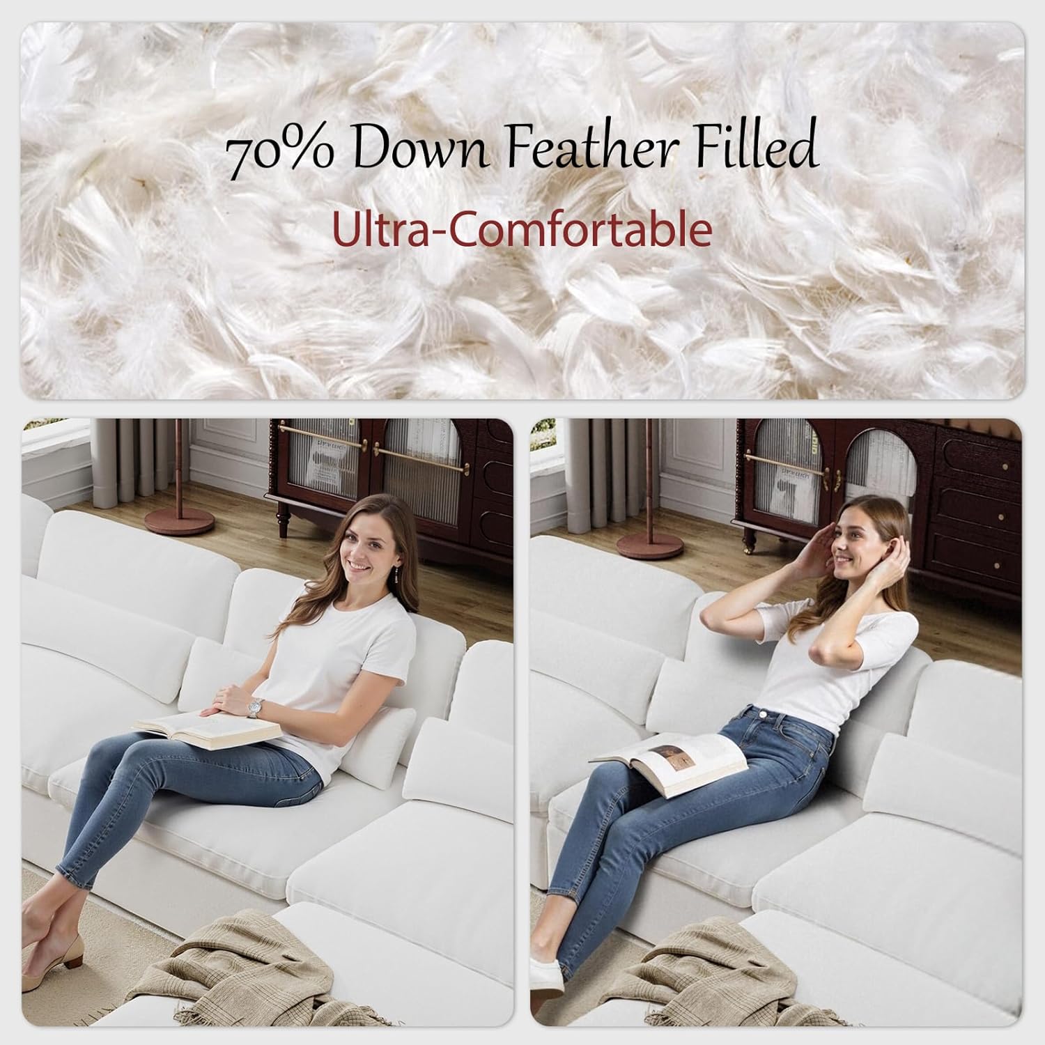 Sink into cloud-like comfort with this minimalist modular sectional designed for modern living. Plush down-filled cushions and a deep seat create a relaxed lounge experience, while removable chenille covers and integrated storage make it practical for everyday life. Its clean lines and neutral white finish blend seamlessly with contemporary décor.