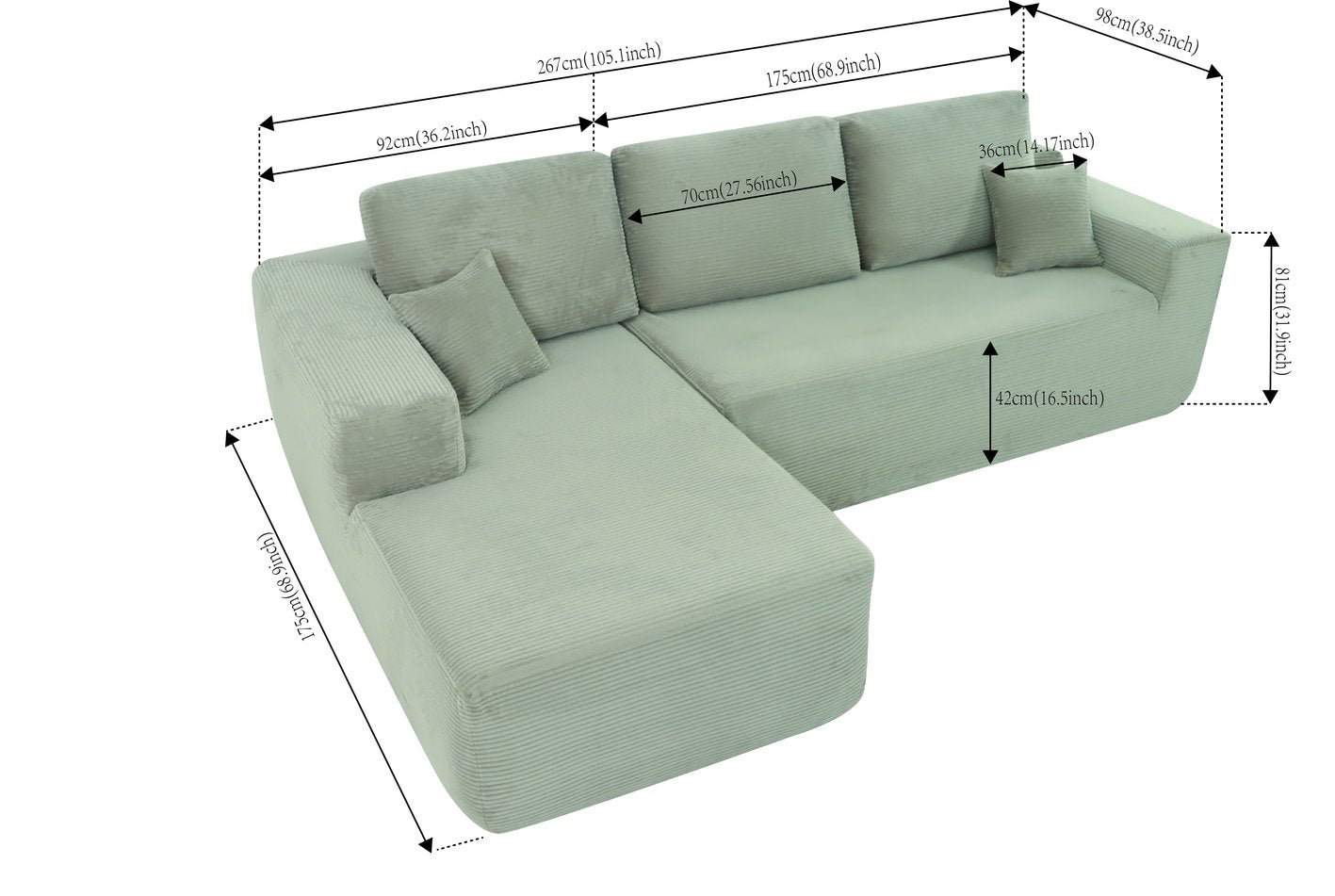 - Modular Sectional Sofa:This sectional sofa featuring a sleek design, clean lines, and high-quality plush corduroy Fabric,This sectional set maximizes space when placed against a wall,this corner sofa effortlessly adds a timeless and sophisticated touch to your home. Designed to be the focal point of attention, it's an ideal choice for elevating the ambiance of living rooms, apartments, and bedrooms.