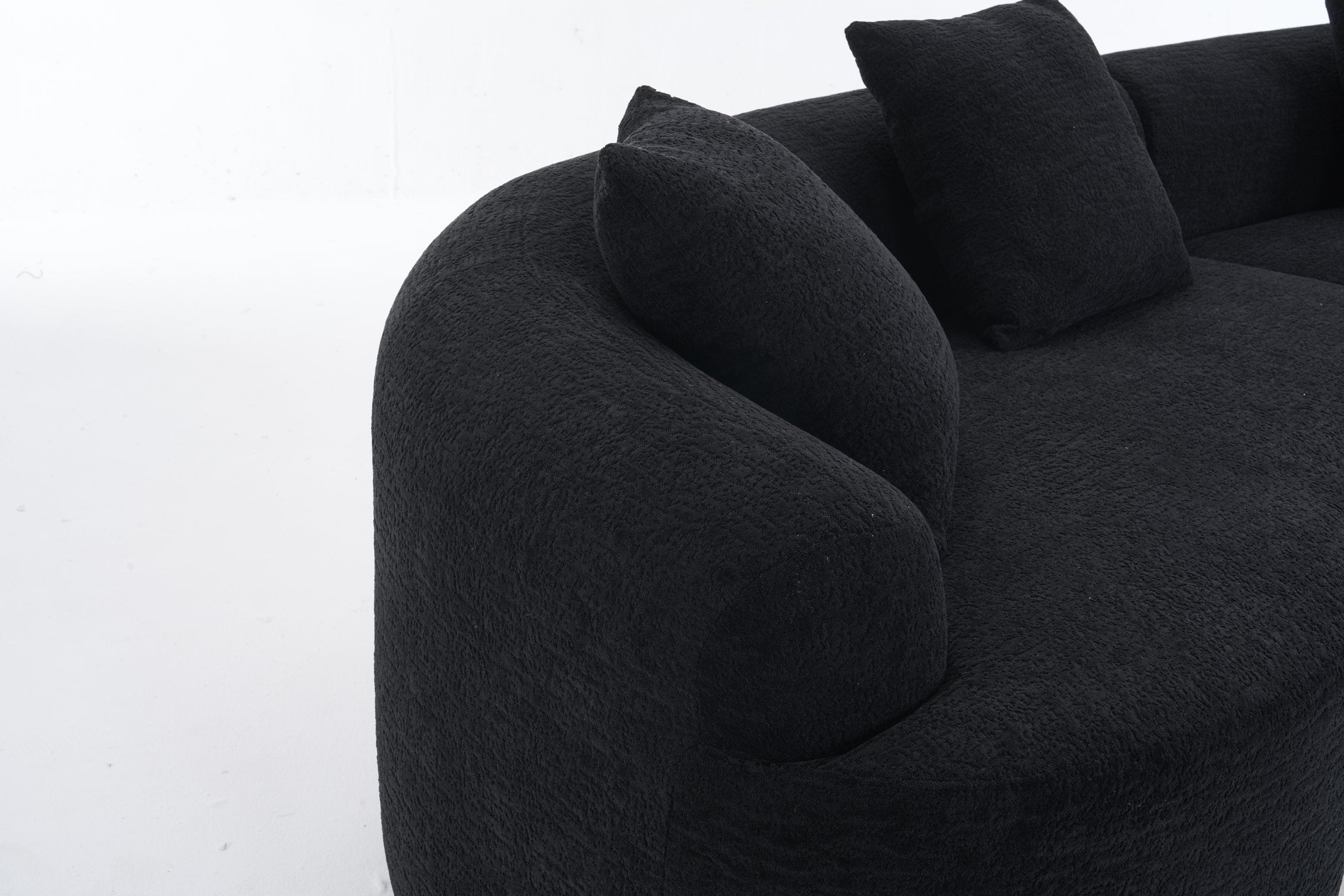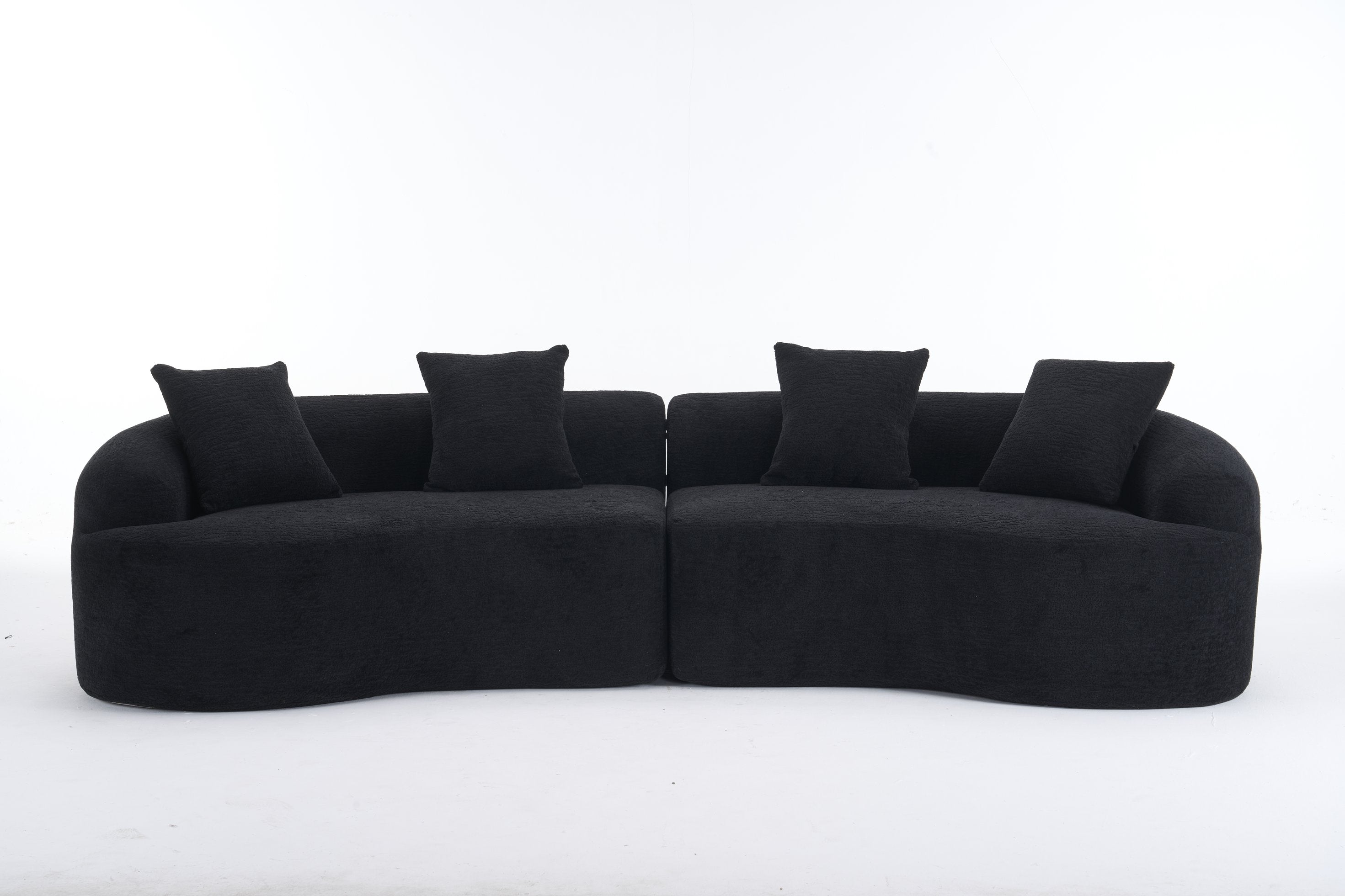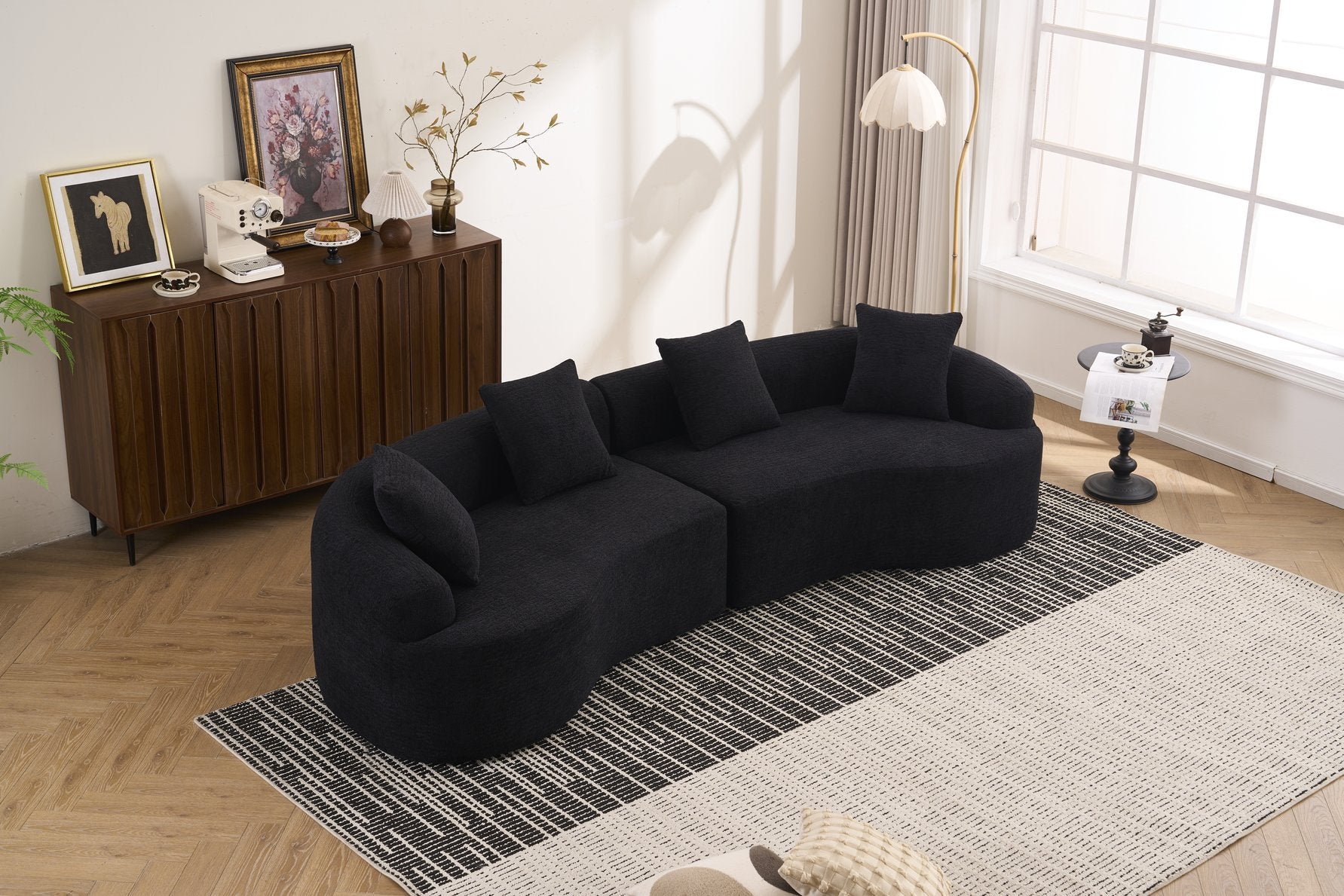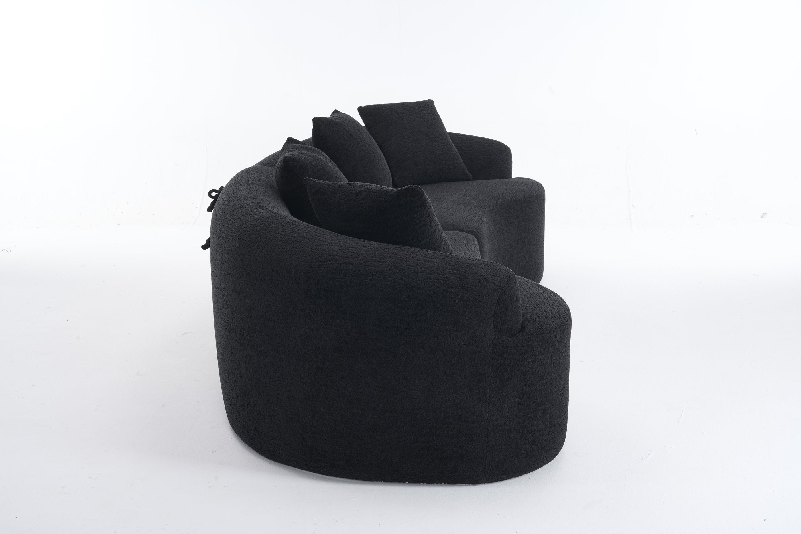 A modern, family-friendly curved modular sectional designed for comfort, safety, and easy living — perfect for apartments and contemporary living rooms. Upholstered in soft black chenille with 30D high-density foam, this sleeper-style sofa delivers supportive seating, smooth rounded edges for child- and pet-safe use, and modular pieces that make moving and room layout simple.