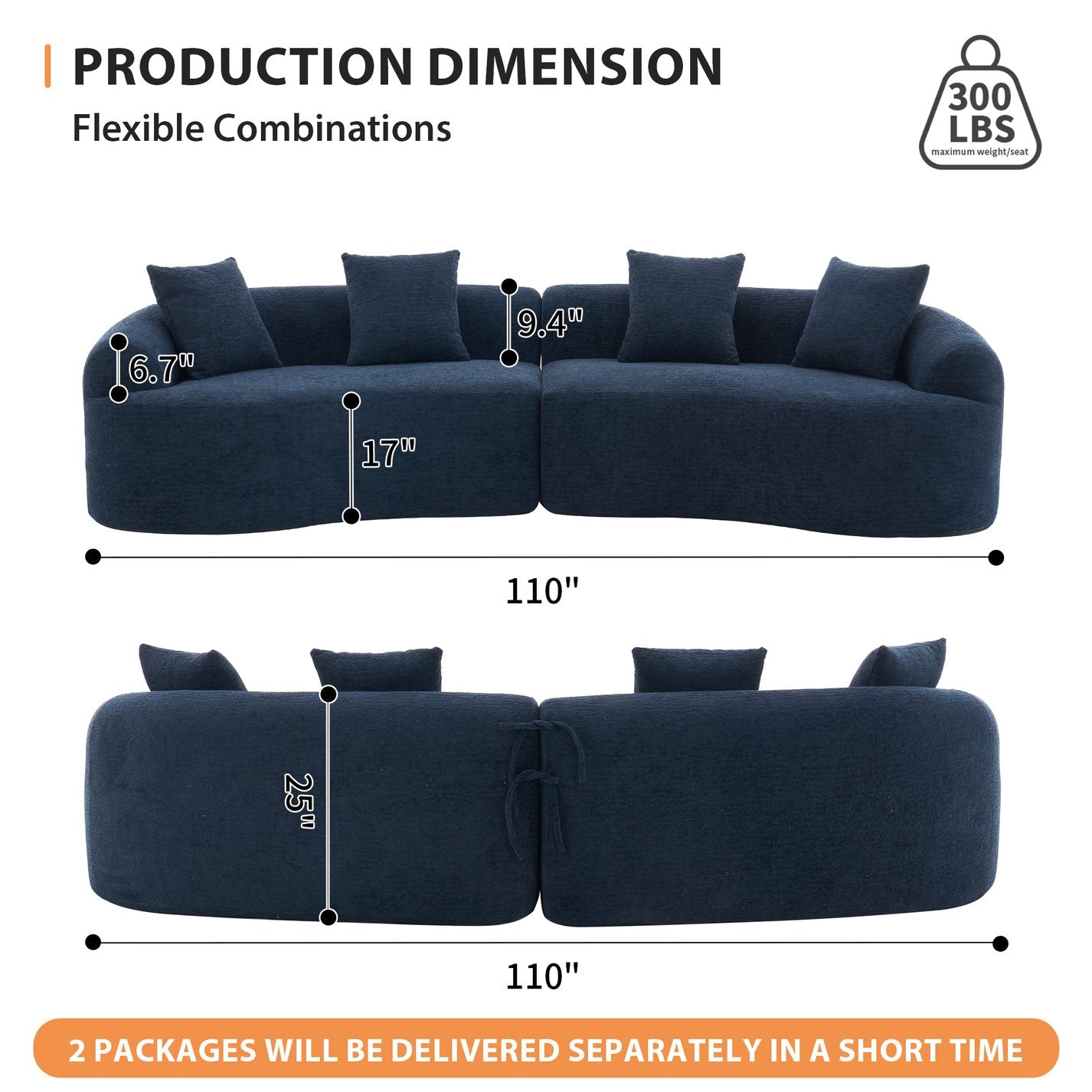 - Luxurious Design: The 110'' Sofa combines a luxurious and lavish design with its curved shape and polyster fabric upholstery.