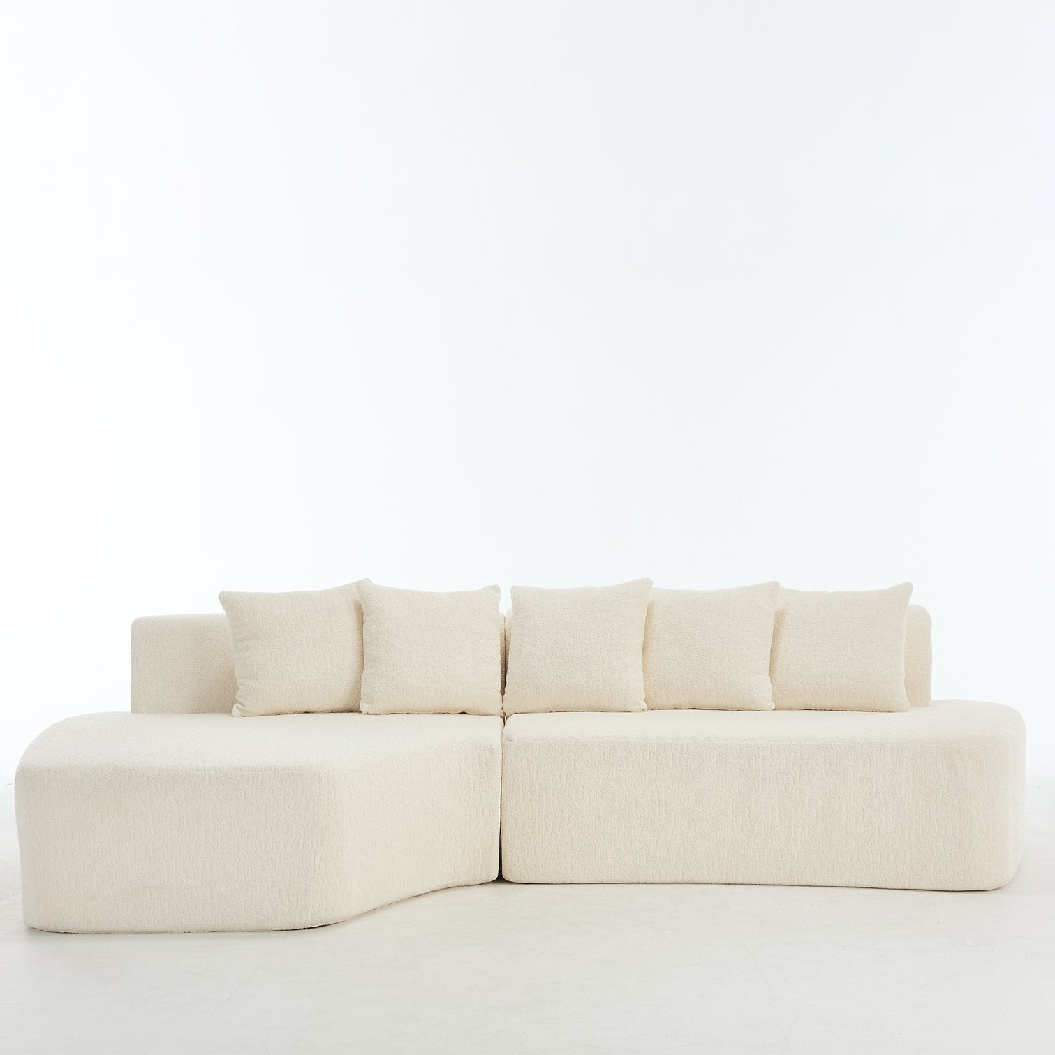 Sink into cloud-like comfort with this minimalist modular sectional designed for modern living. Upholstered in plush ivory corduroy, the irregular L-shaped design combines deep seating and a roomy chaise to create a versatile centerpiece for living rooms, bedrooms, apartments, or lounges. Built for everyday use, it pairs soft texture with a durable, easy-care finish and arrives ready to enjoy with no assembly required.