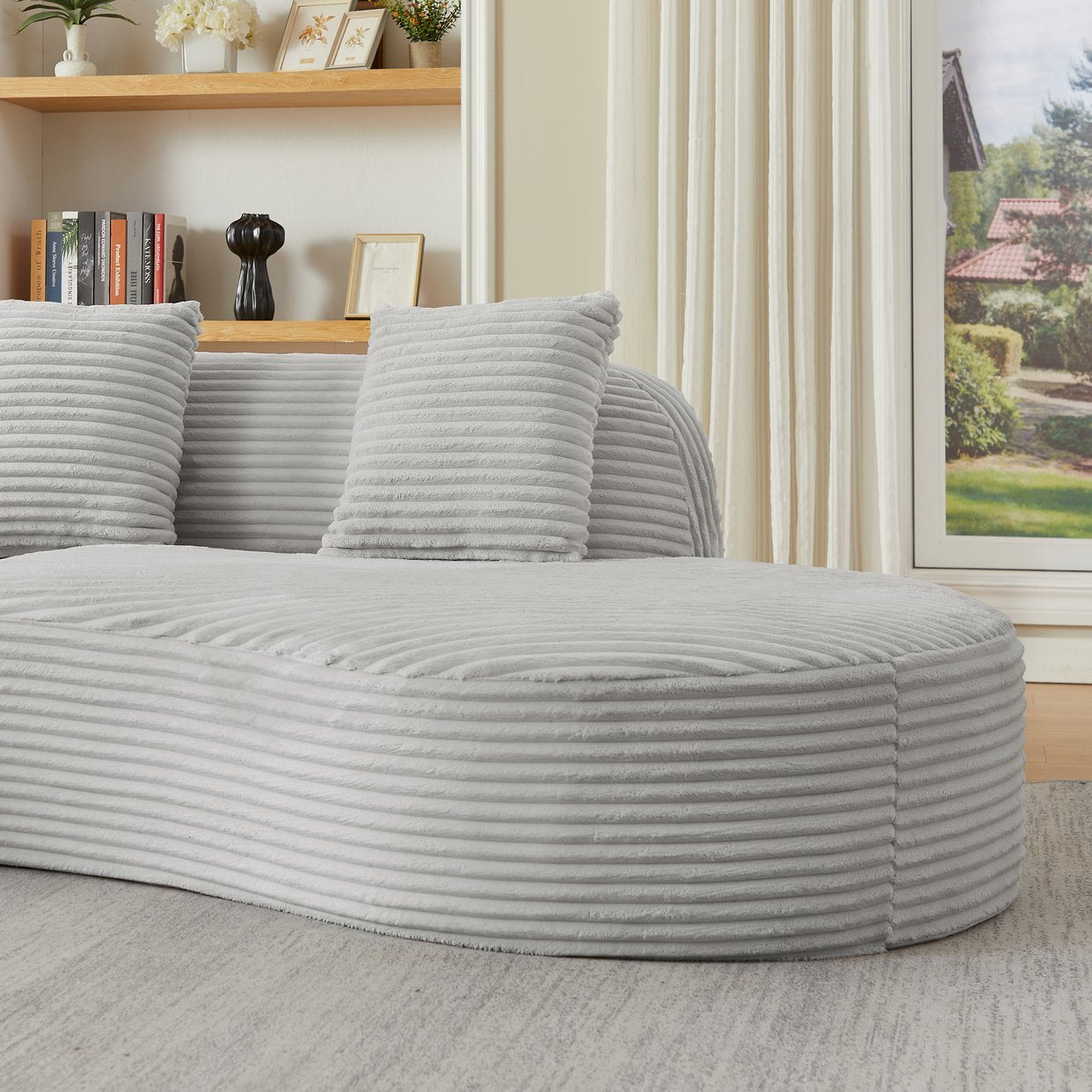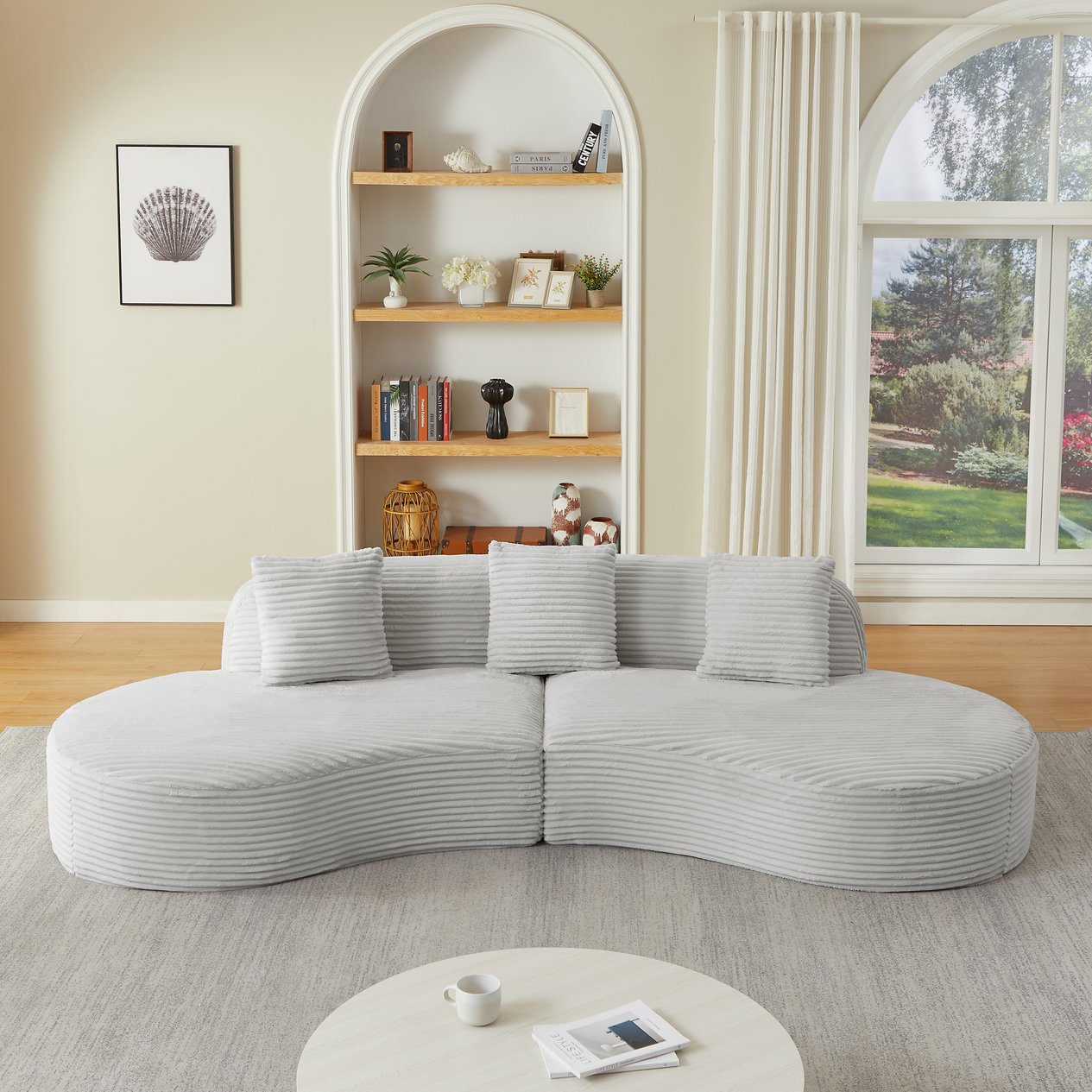 Bring modern comfort and effortless style to your living space with this contemporary curved sectional sofa. Upholstered in plush corduroy and fitted with spring-packed cushions, it offers a cozy yet supportive seating experience that's ready to enjoy right out of the box. Its gentle curve and sleek silhouette make it an excellent focal piece for apartments, living rooms, or lounge areas where both form and function matter.