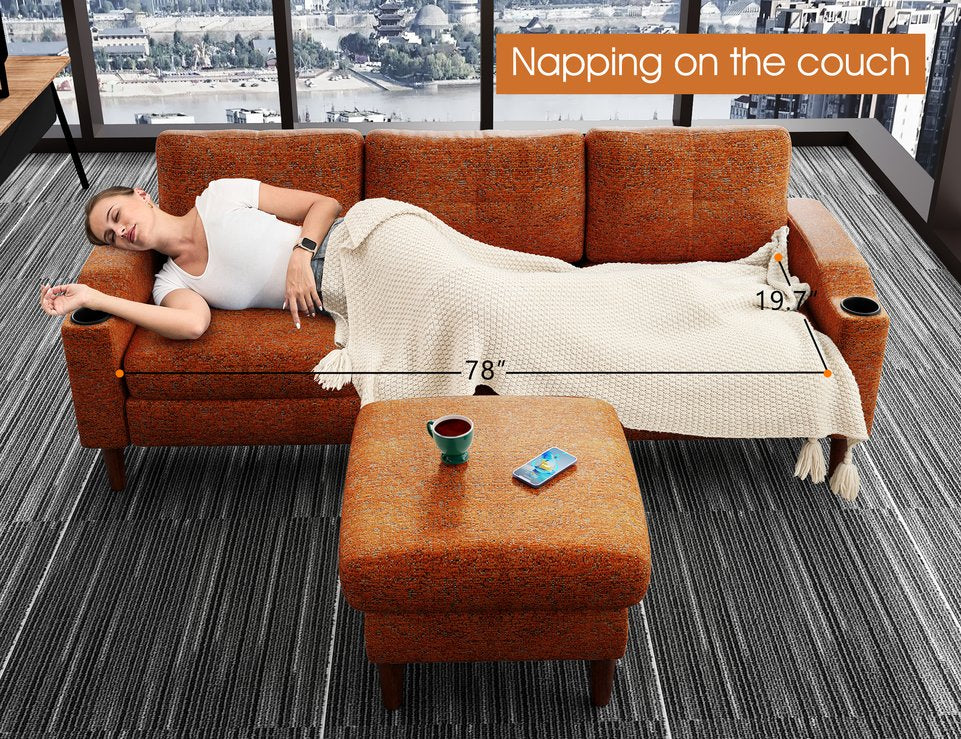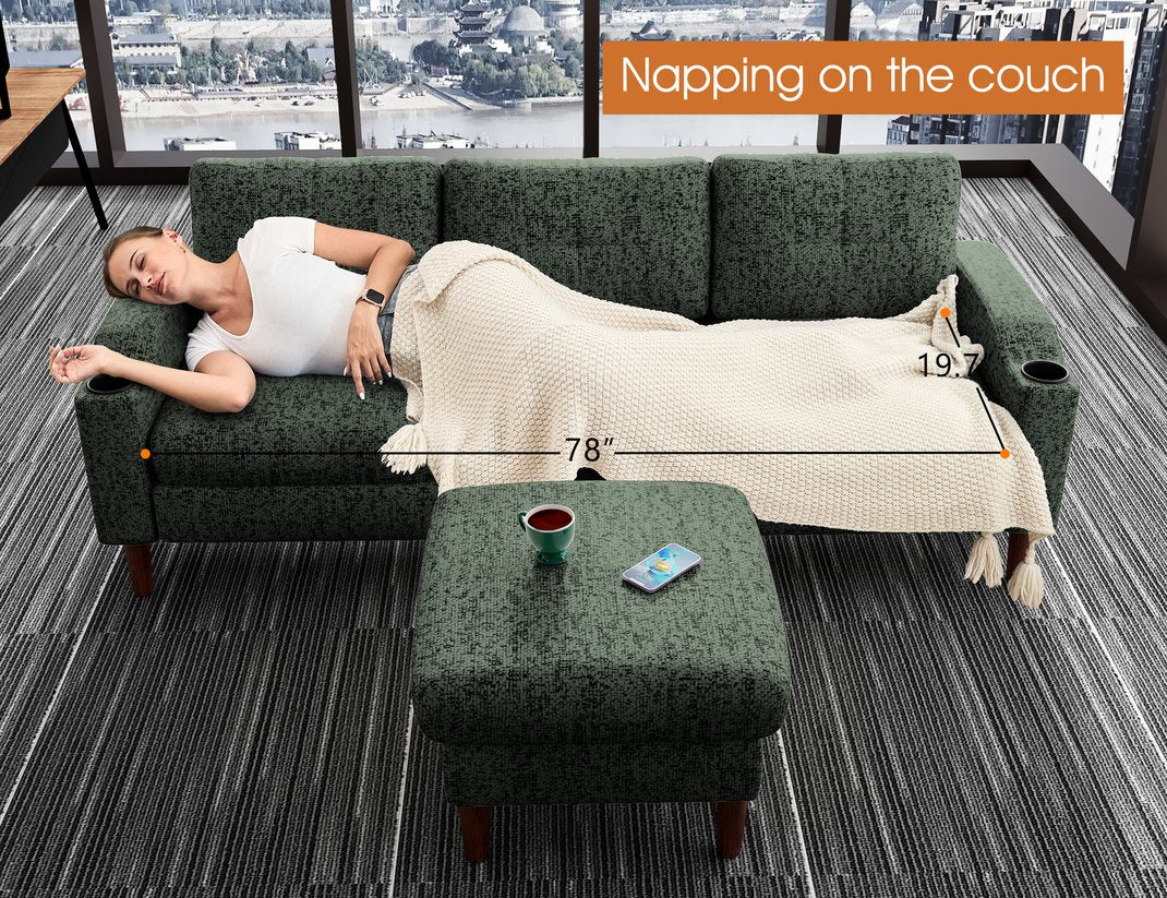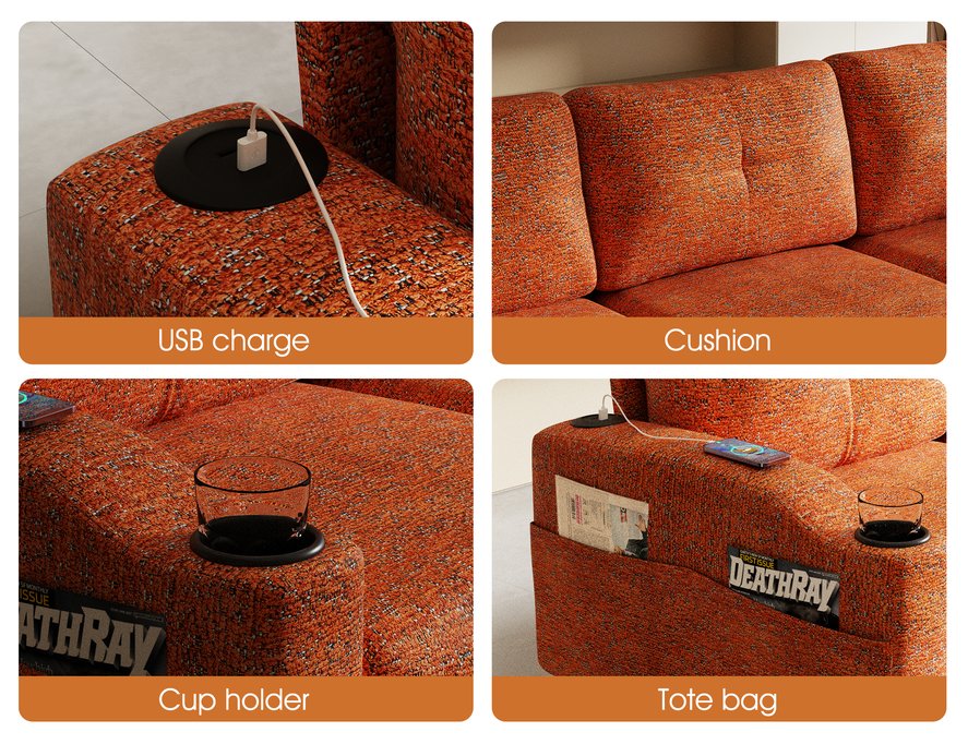 - CONVENIENT USB PORT AND CUP HOLDER: Equipped with a built-in USB port for charging devices and a convenient cup holder, this sofa combines comfort with modern convenience for a more cozy lounging experience.