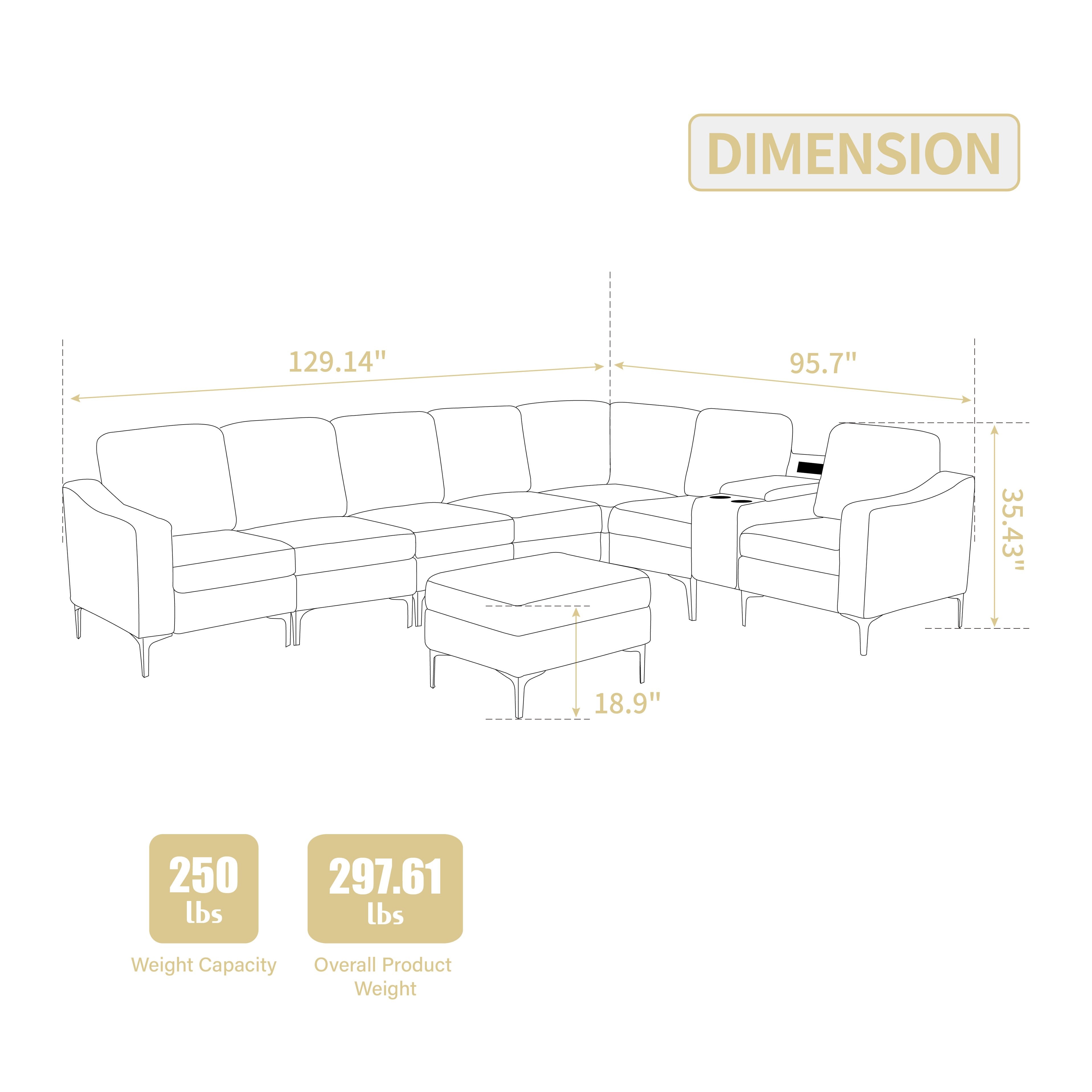 - Overall: 129.14 × 95.7 × 35.43 inches (L × D × H)