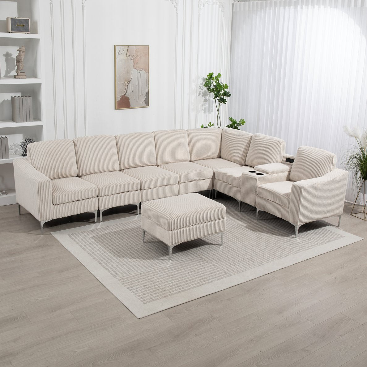 Upgrade your living space with this versatile convertible sectional sofa, combining cozy corduroy upholstery with practical features like a storage ottoman, built-in cupholders, and USB ports. Designed for modern apartments and family rooms, it offers comfortable seating for six with durable construction and thoughtful conveniences to support everyday living and entertaining.