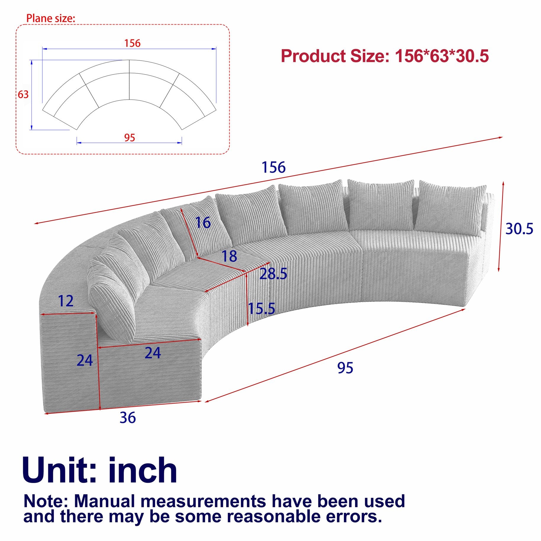 - 【UNIQUE DESIGN】 The curved sofa's unique shape instantly fills your room with a cozy ambiance, featuring beautifully detailed the curves of the armrests, Corduroy fabric, for an elegant look. This comfy couch also comes with 4 pillows for comfortable back support.