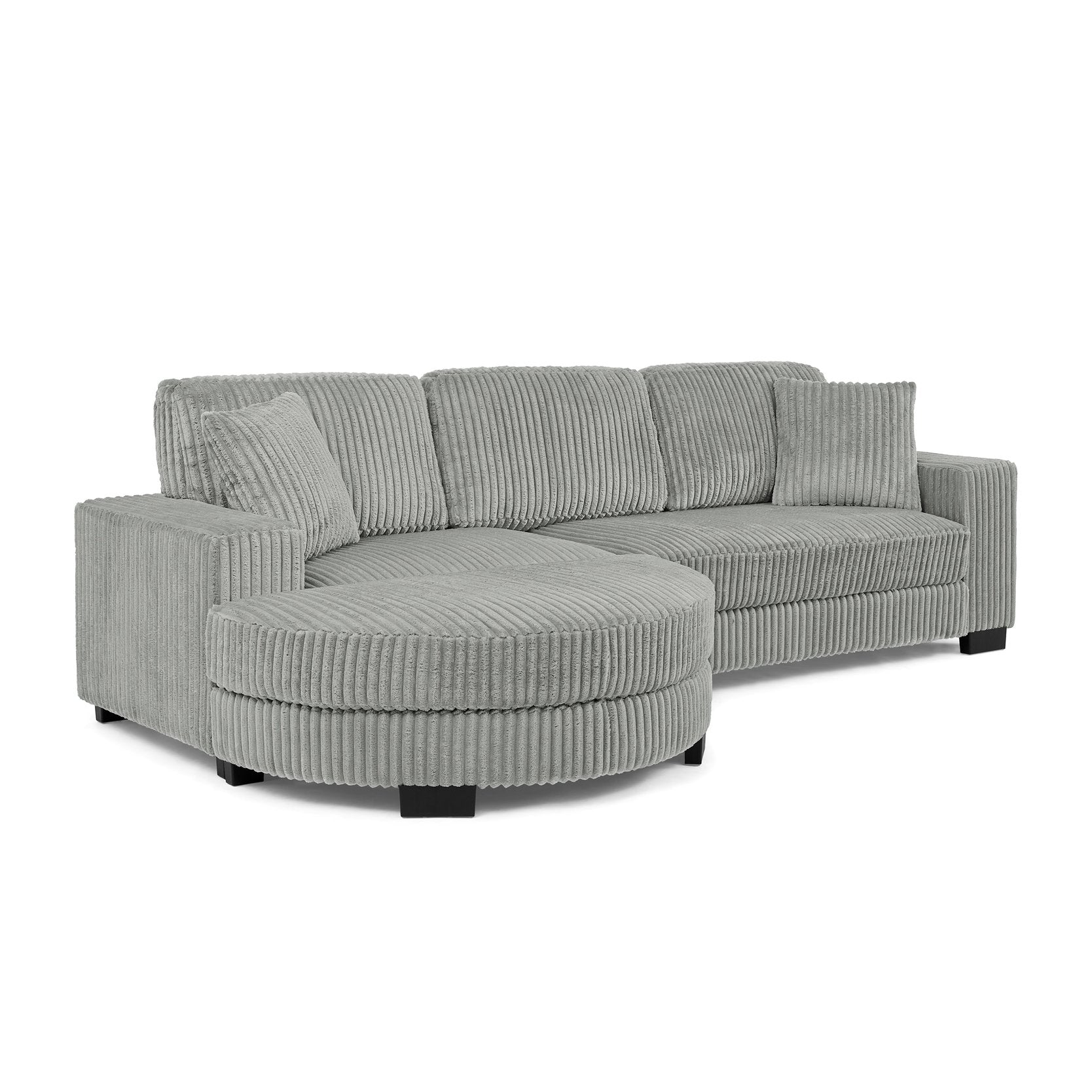 - Upholstery: Durable, soft corduroy fabric in versatile gray