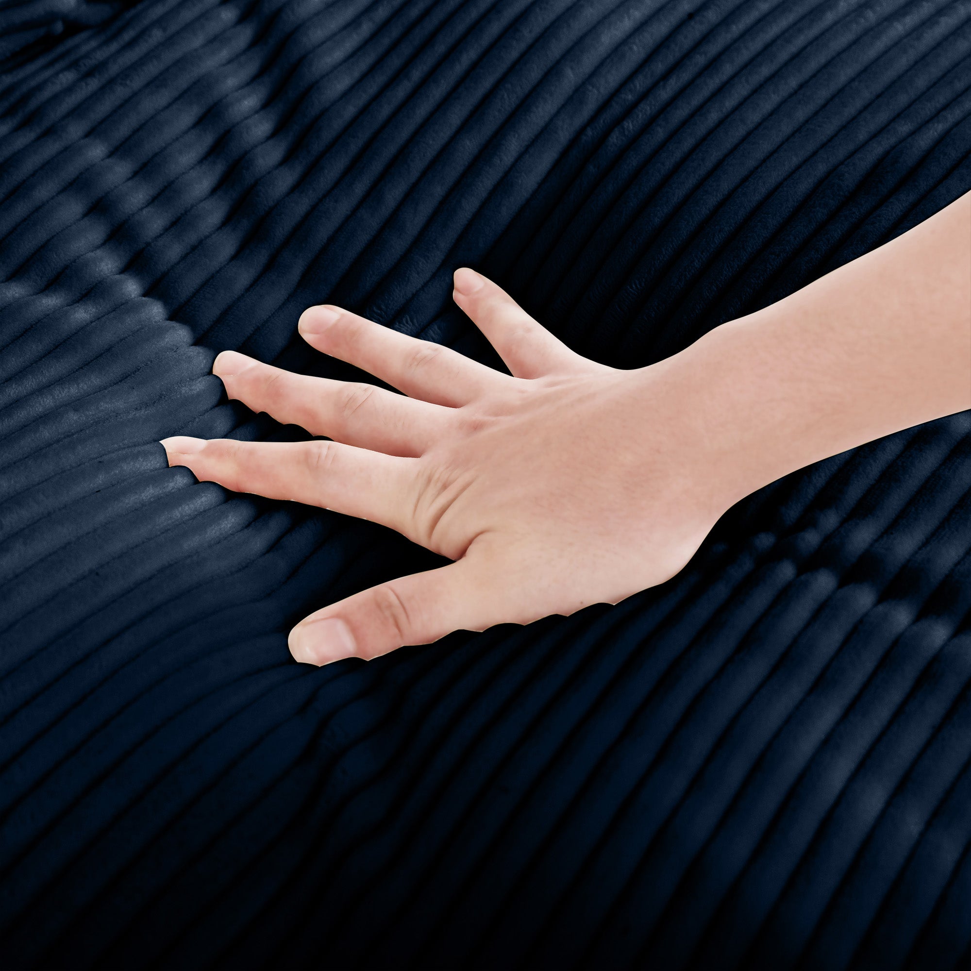 - Superior comfort - extended deep seats allows you to sit cozy on the sofa, soft waist pillow to offer excellent support to your waist, ergonomic seat angle eliminating your fatigue of the day and bringing a full sense of security and comfort. Back and seat cushion are upholstered with comfortable high-density foam cushions for ultimate comfort and support.The back cushions and seat cushions are soft and fluffy, and the stripped corduroy fabric gives it a cloud-like wrapping feel.