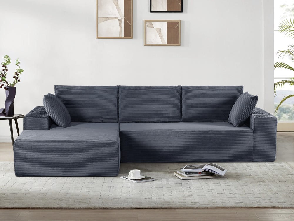 Transform your living space with this versatile, ultra-comfortable sectional designed for modern homes. Upholstered in soft dark gray corduroy, the convertible design adapts to your needs—whether you want an L-shaped sofa, a straight couch, a twin bed, or separate seating—while the full-foam construction delivers supportive comfort for lounging, working, or overnight guests. Ready to use right out of the box with no assembly required, it’s an easy, stylish solution for living rooms, bedrooms, and multi-purpose spaces.