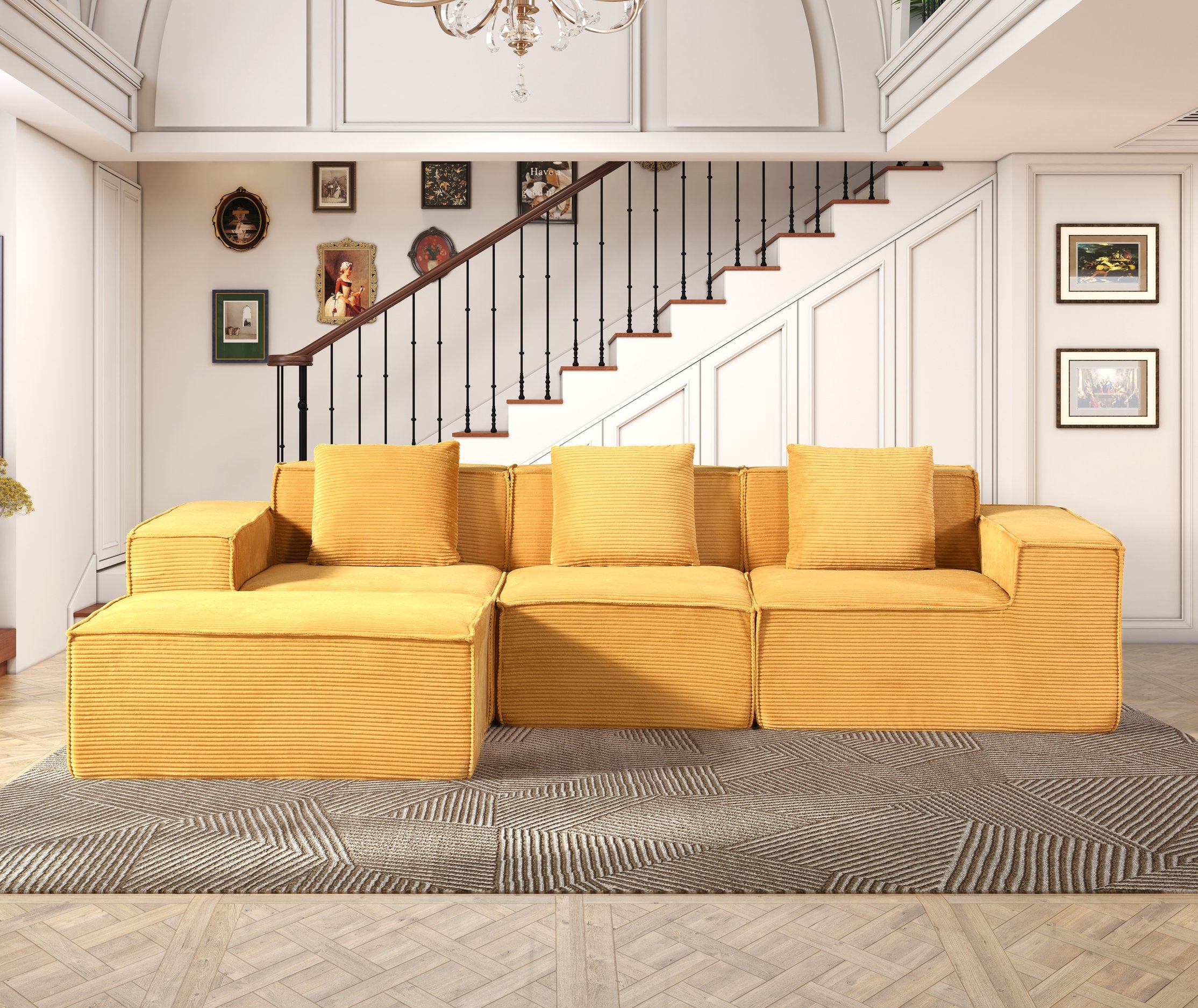 - Stylish Corduroy Fabric in 6 Colors: Available in Black, Dark Green, Dark Grey, Red Orange, Ginger Yellow, and Beige, this high-back modular sofa brings modern charm and cozy texture to any home décor.