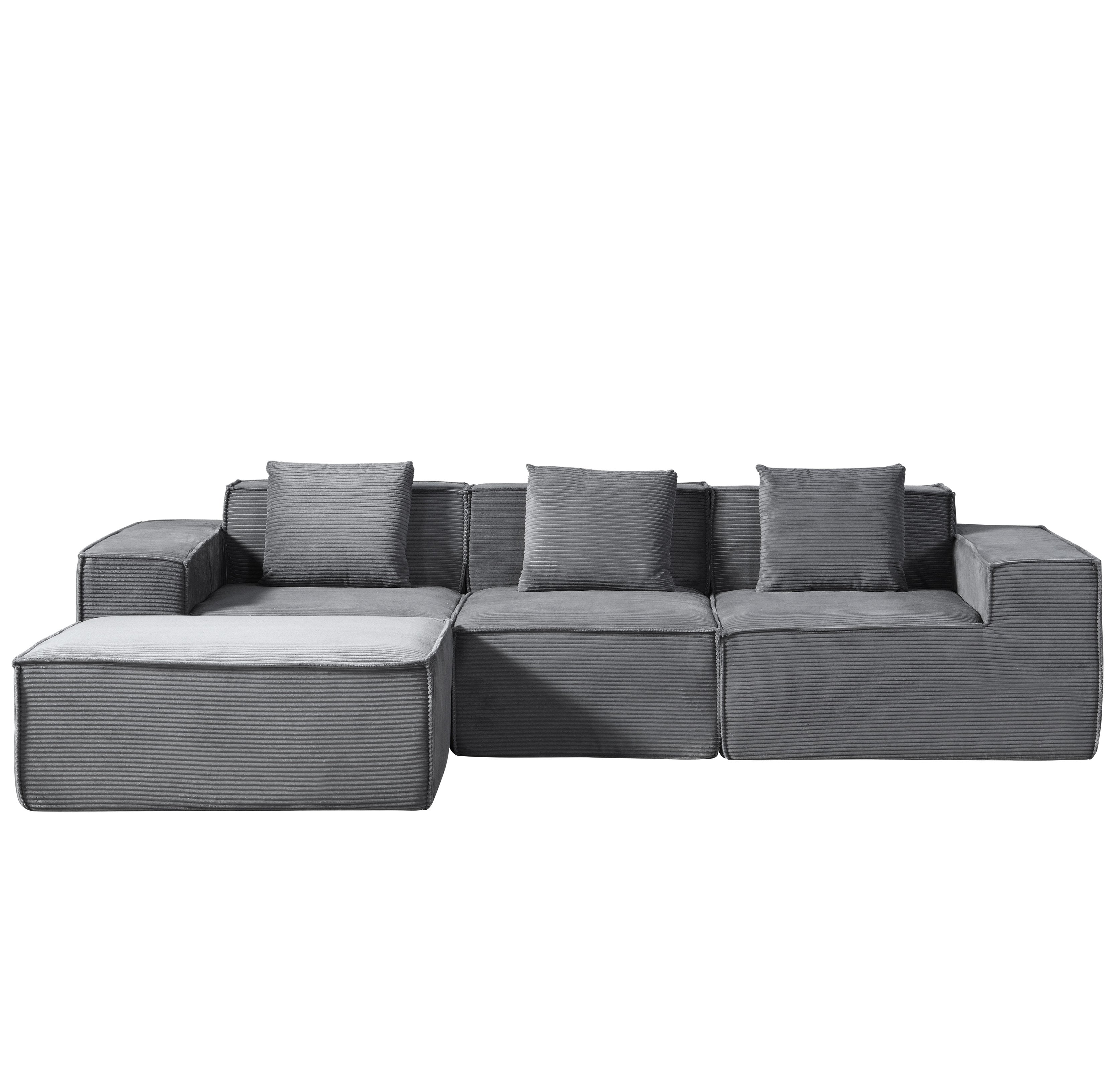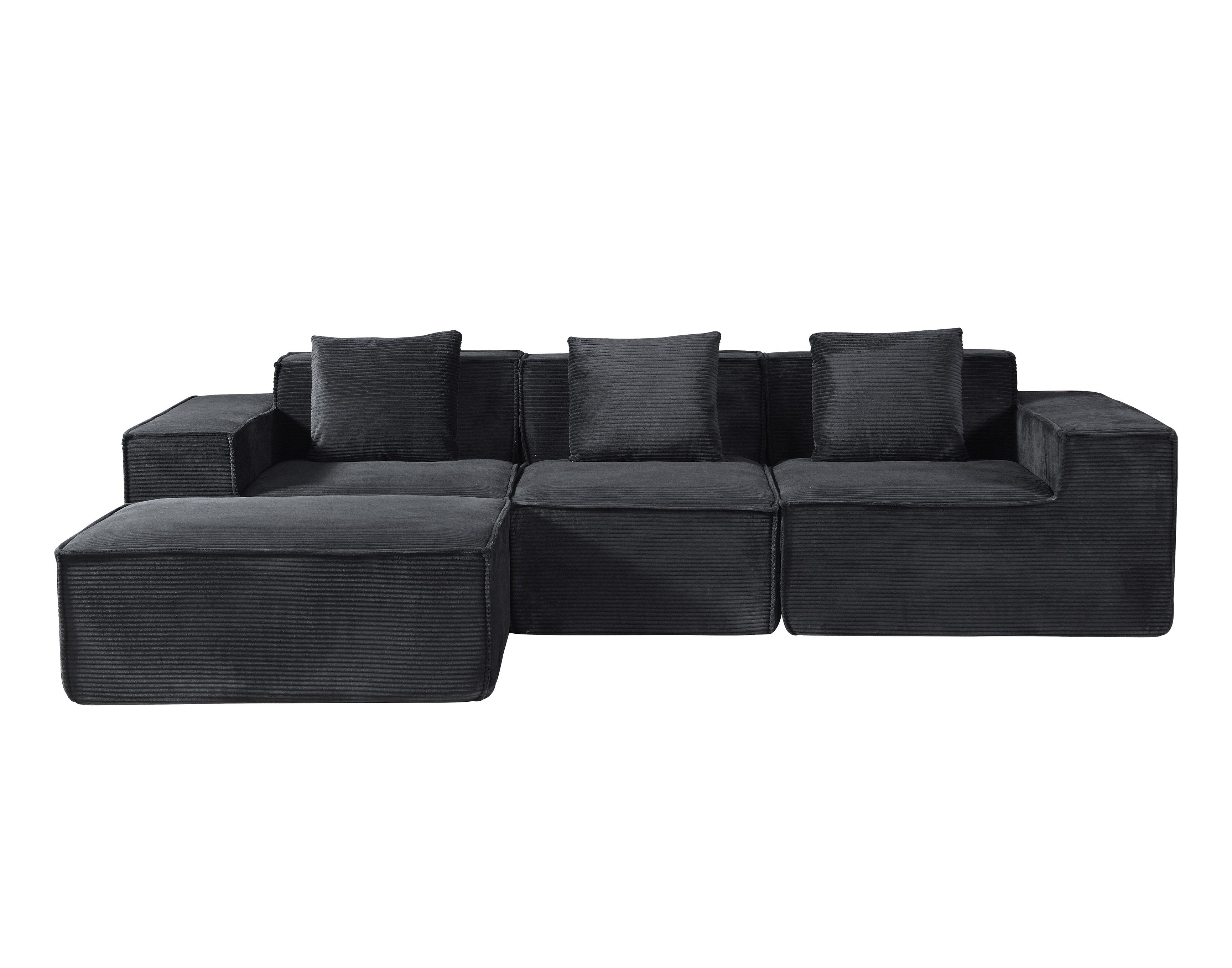 - Spacious L-shape seating: 112.1" modular sectional layout provides generous seating for family and guests (modular pieces can be arranged to suit your space).