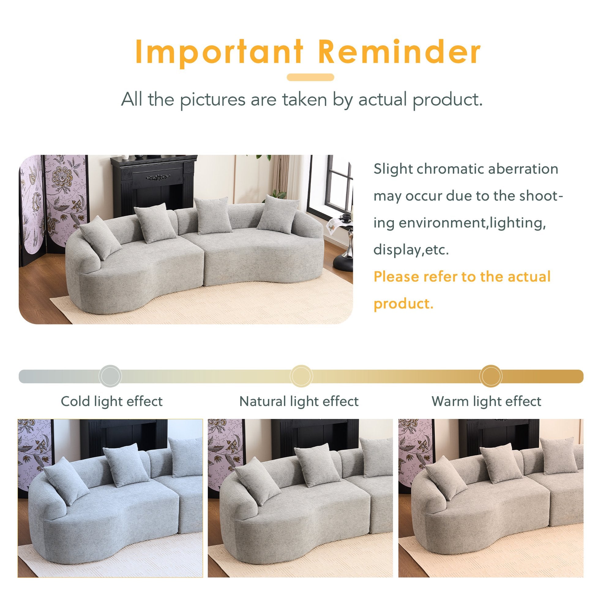 - No assembly required:This sofa can free of your stereotyped nightmare of furniture assembly. Please take all packages out and pat every part to make it rebound better and fluffy, so that it can restore to picture-like status.