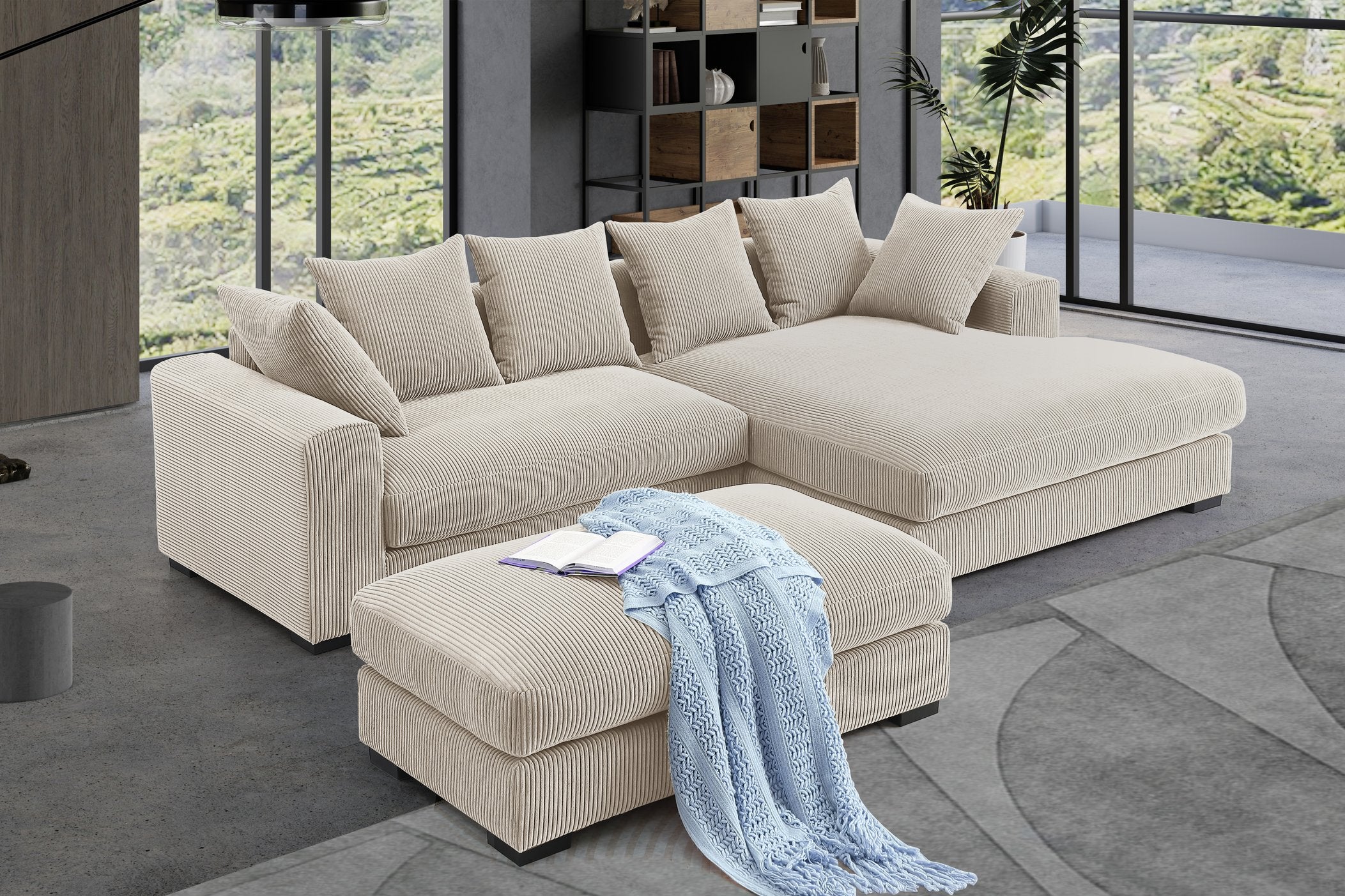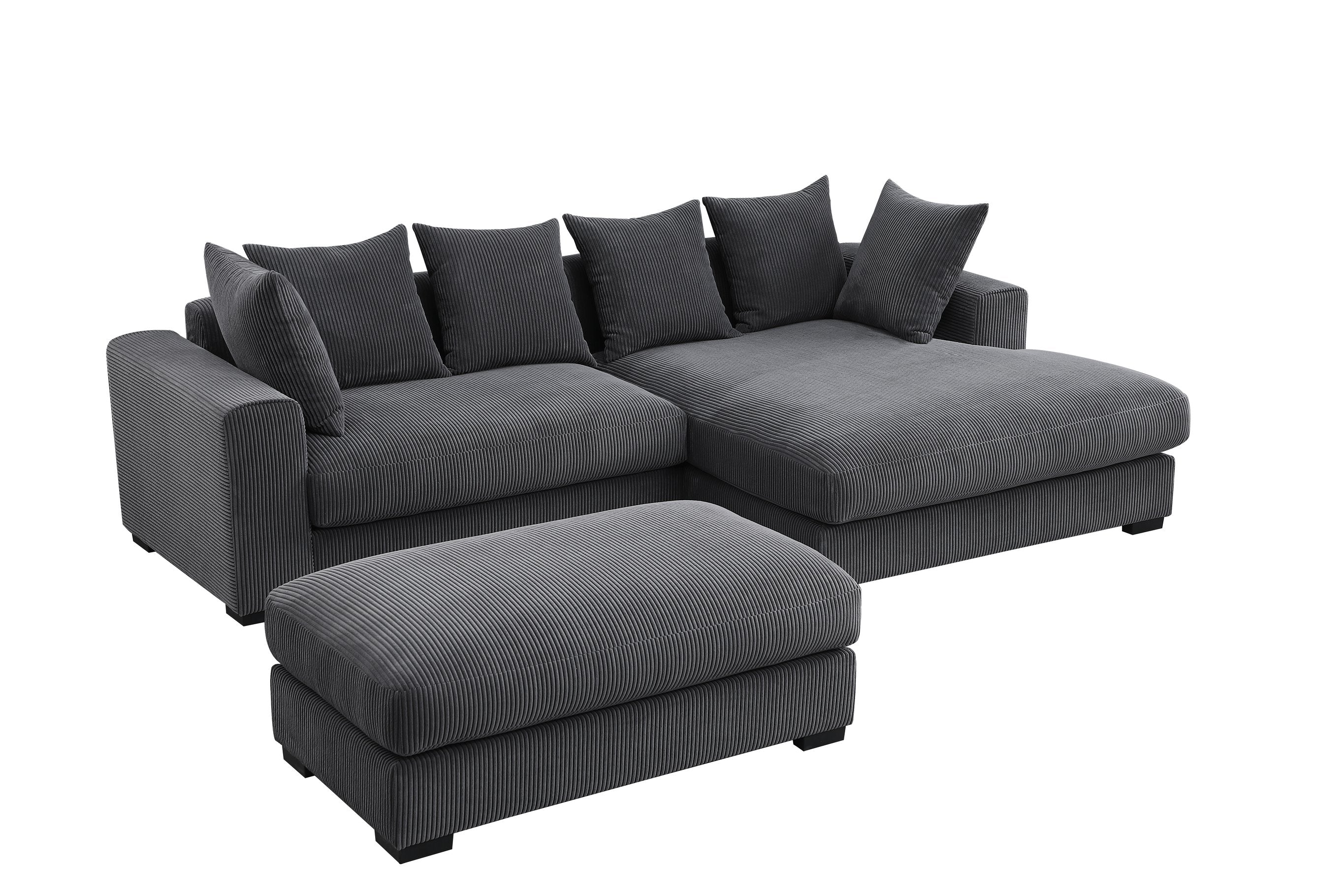 - Whether you're hosting gatherings, enjoying movie nights, or simply unwinding after a long day, this corduroy sectional offers the perfect setting. The ottoman can be used to stretch out or as a convenient surface for books, snacks, or drinks