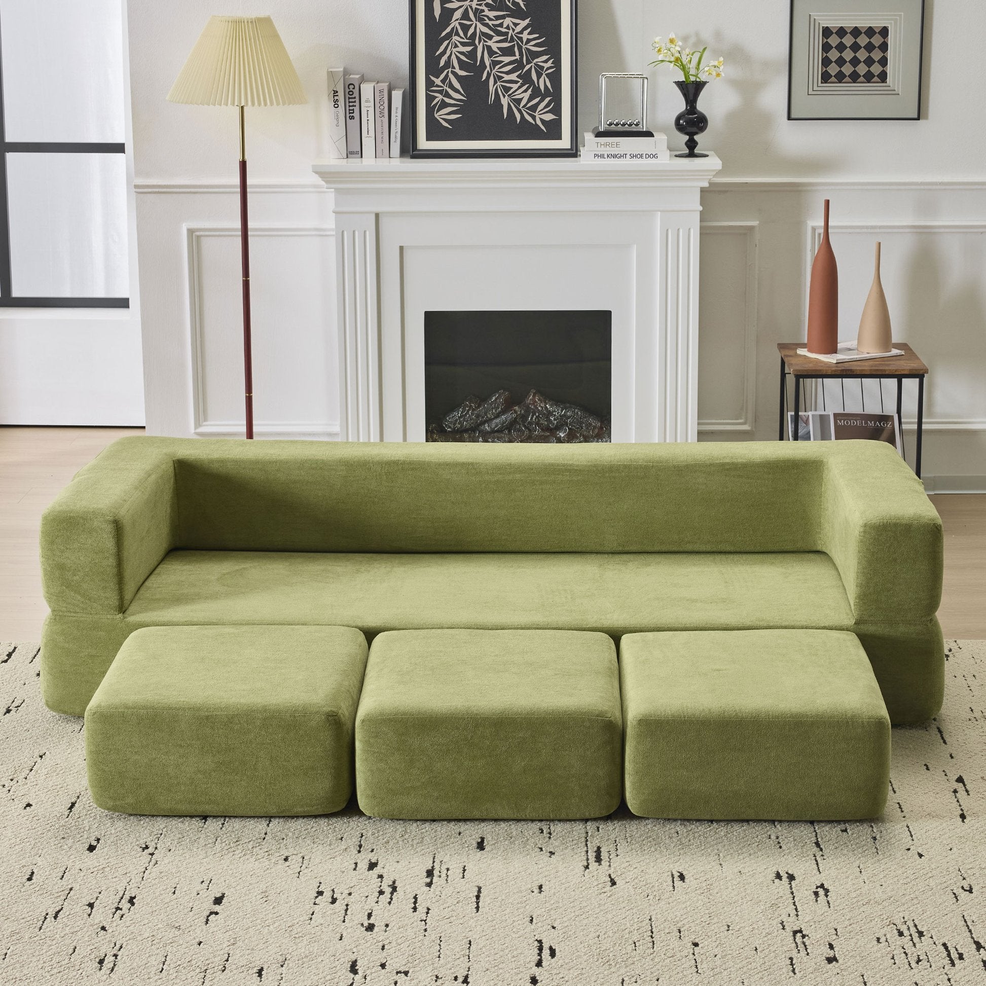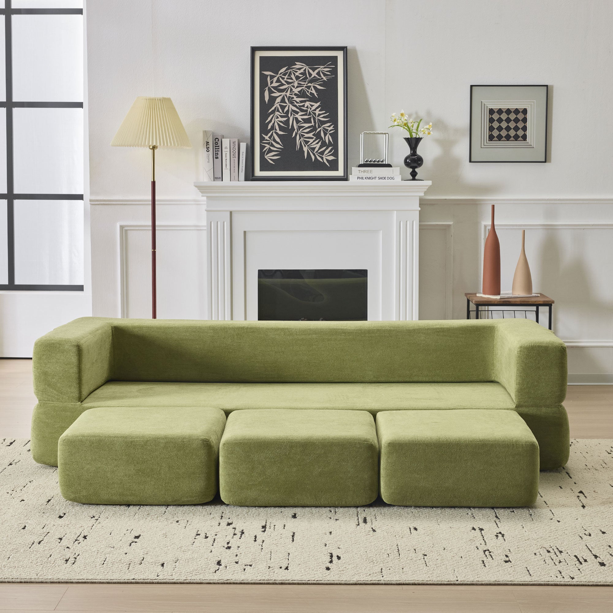 - This convertible sofa bed is crafted from ultra-soft chenille fabric, offering both skin-friendly comfort and lasting durability. Featuring a smart zippered design for easy removal and cleaning, maintenance becomes effortless—elevating convenience to a luxurious experience.