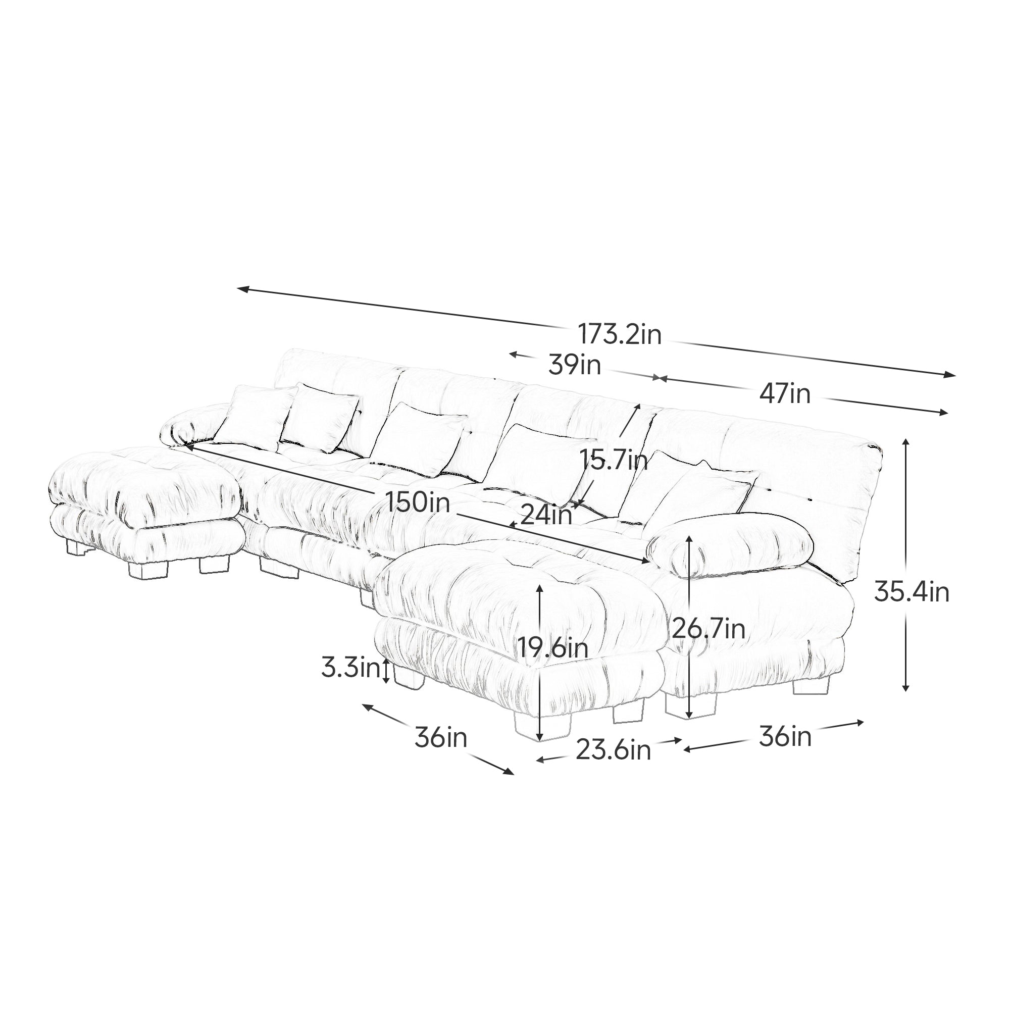 Experience luxurious, cloud-like comfort with this versatile modular sectional designed to adapt to your living space. Upholstered in soft vintage chenille, the U-shaped 4-seater includes two ottomans and thoughtfully shaped bolster armrests for added style and ergonomic support. Perfect for lounging, entertaining, or creating a cozy family nook, this sectional combines plush cushioning, durable construction, and flexible arrangement options to suit changing needs.