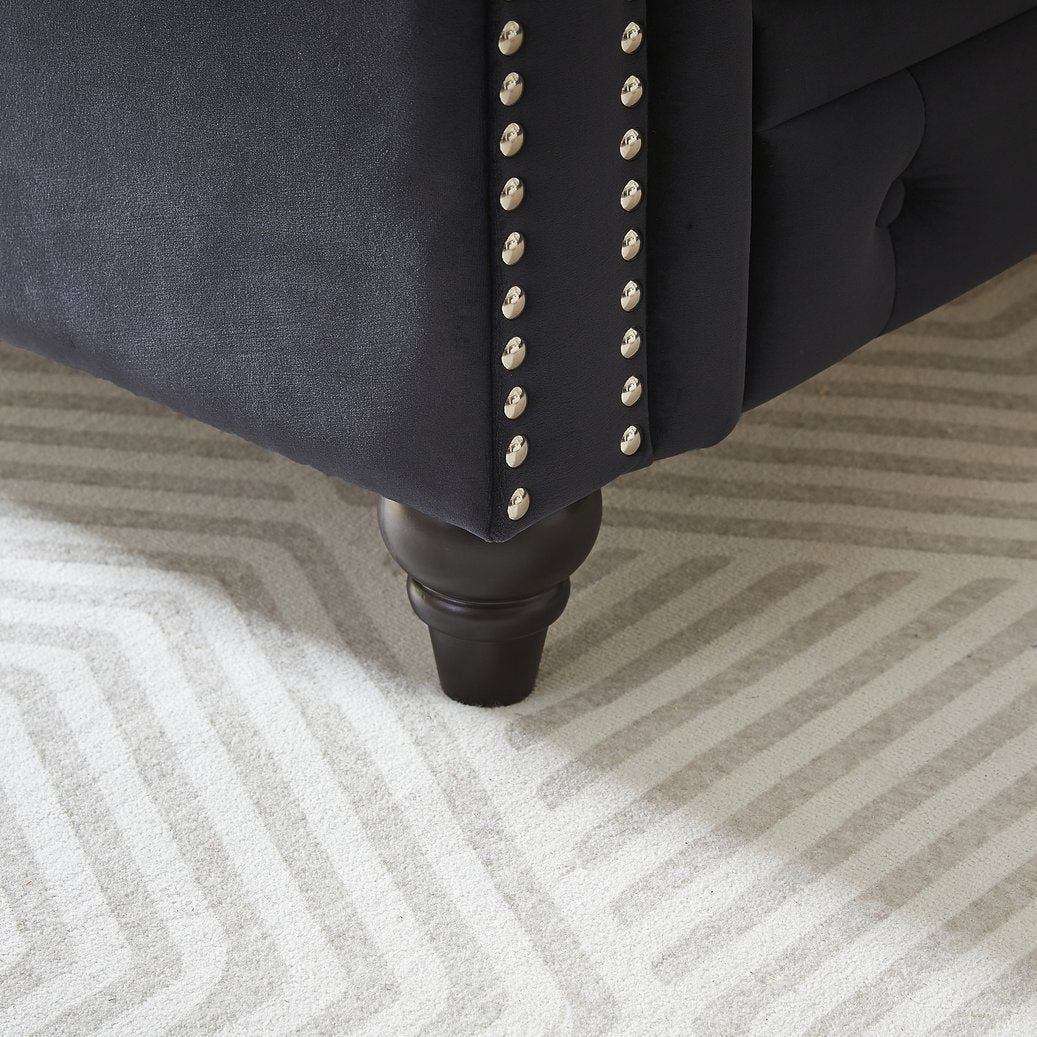 Elevate your living space with this modern Chesterfield-style sectional that blends classic button tufting and nailhead accents with contemporary velvet upholstery. Designed for both comfort and visual appeal, the sofa features supportive foam-and-spring cushions, sturdy wooden legs, and a handsome silhouette that suits formal or casual interiors. Two matching pillows add the finishing touch, while durable construction ensures lasting use.