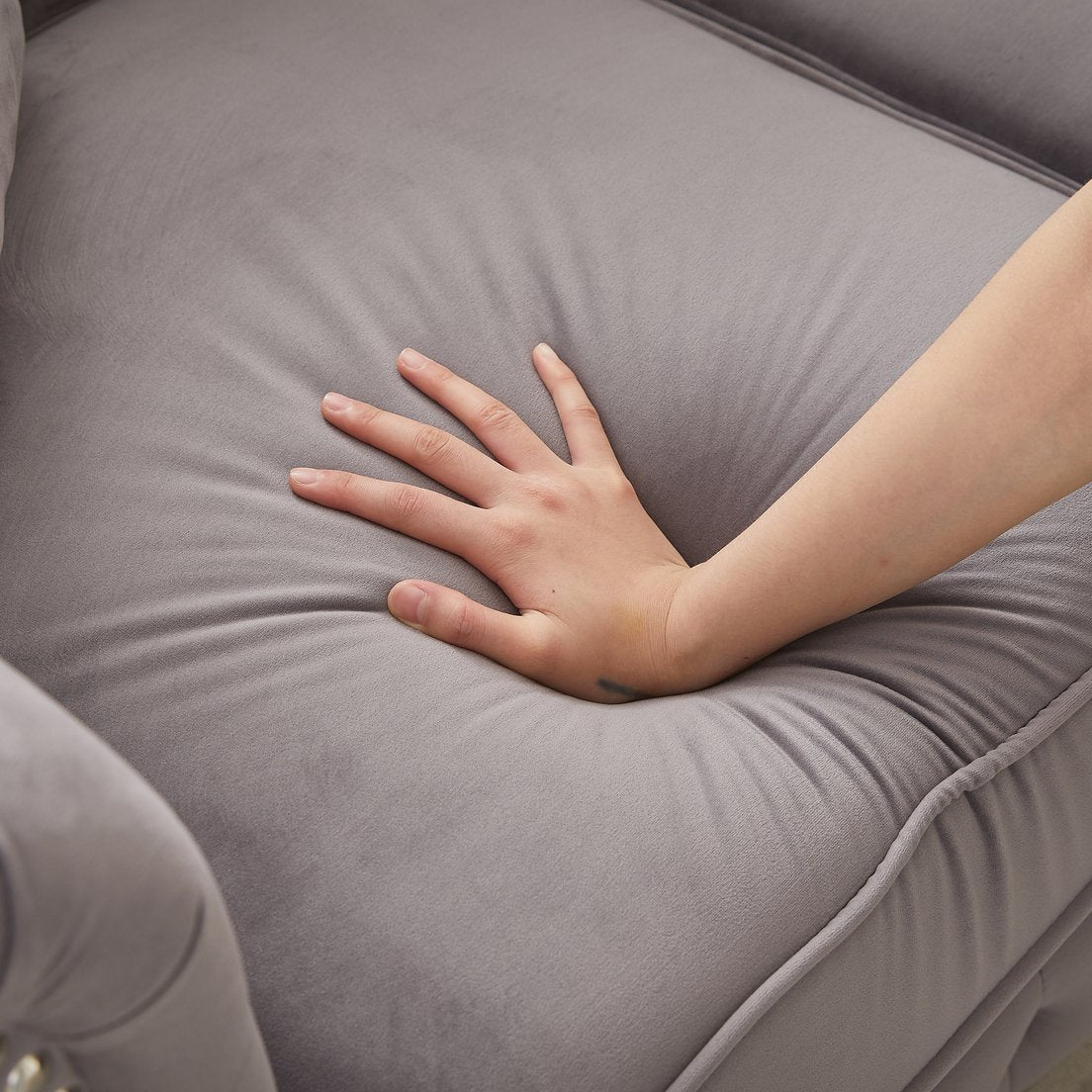 - Crafted from a soft velvet fabric with tufted buttons, this sofa adds a soft, cozy touch to any living space!