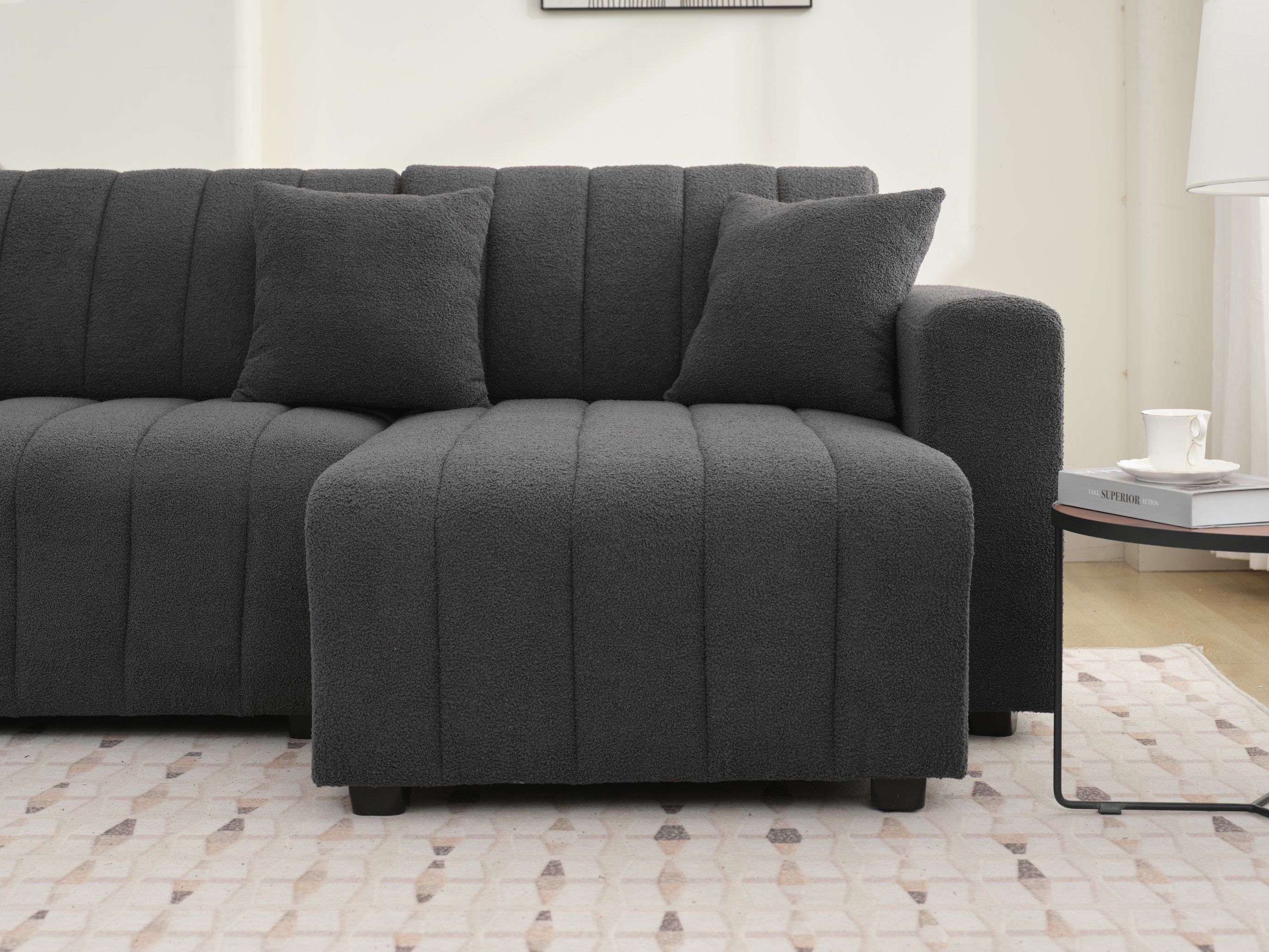 - Material: Upholstered in plush lamb wool, the sectional offers an inviting and cozy feel. The soft, textured fabric adds a touch of warmth and sophistication to your living room