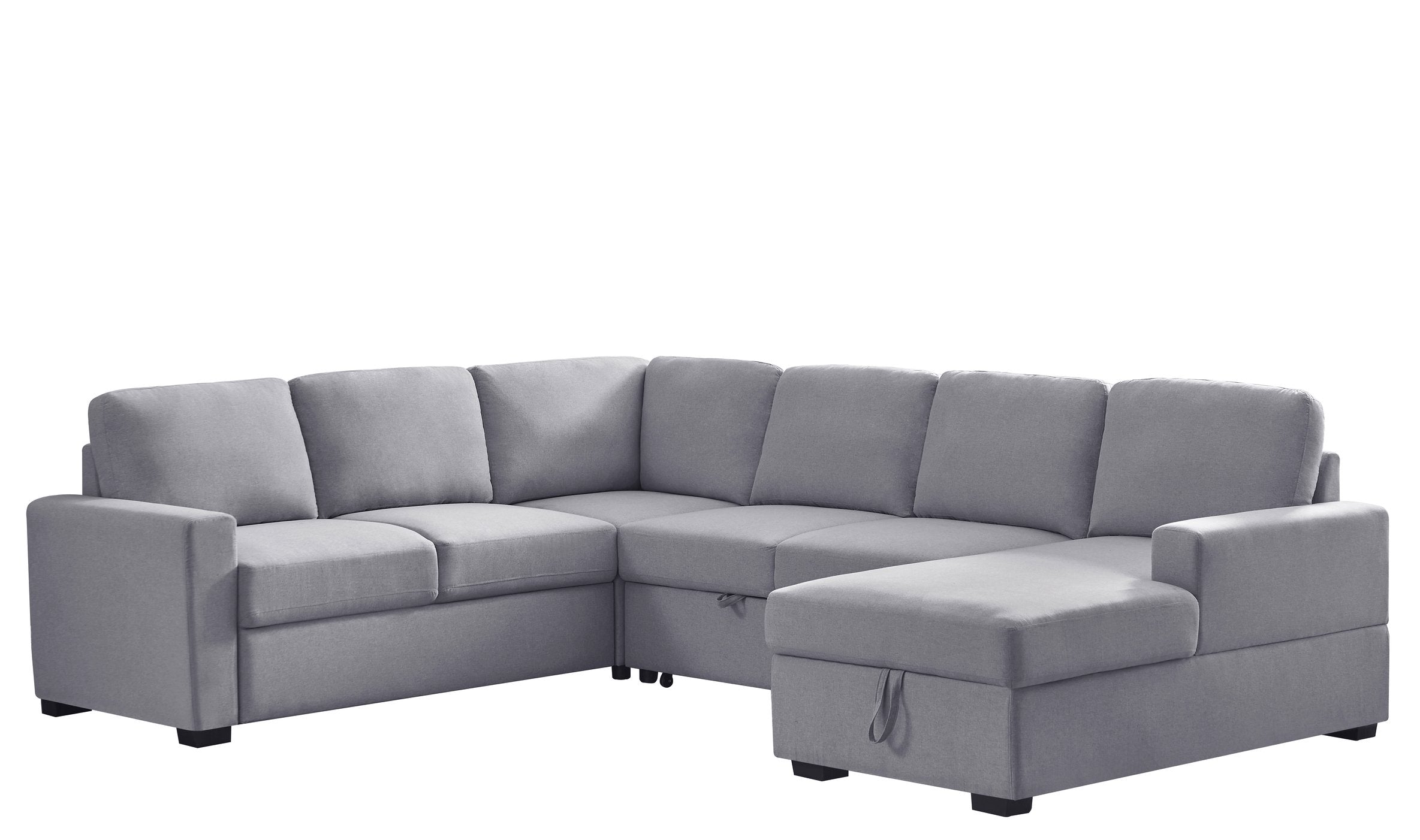 Refresh your living space with the Ketterman 4-piece upholstered sectional — a versatile, comfortable centerpiece designed for everyday living and overnight guests. Upholstered in light gray linen-blend fabric, this modular set combines classic style with practical features like hidden storage and a pull-out loveseat to maximize functionality in modern homes.