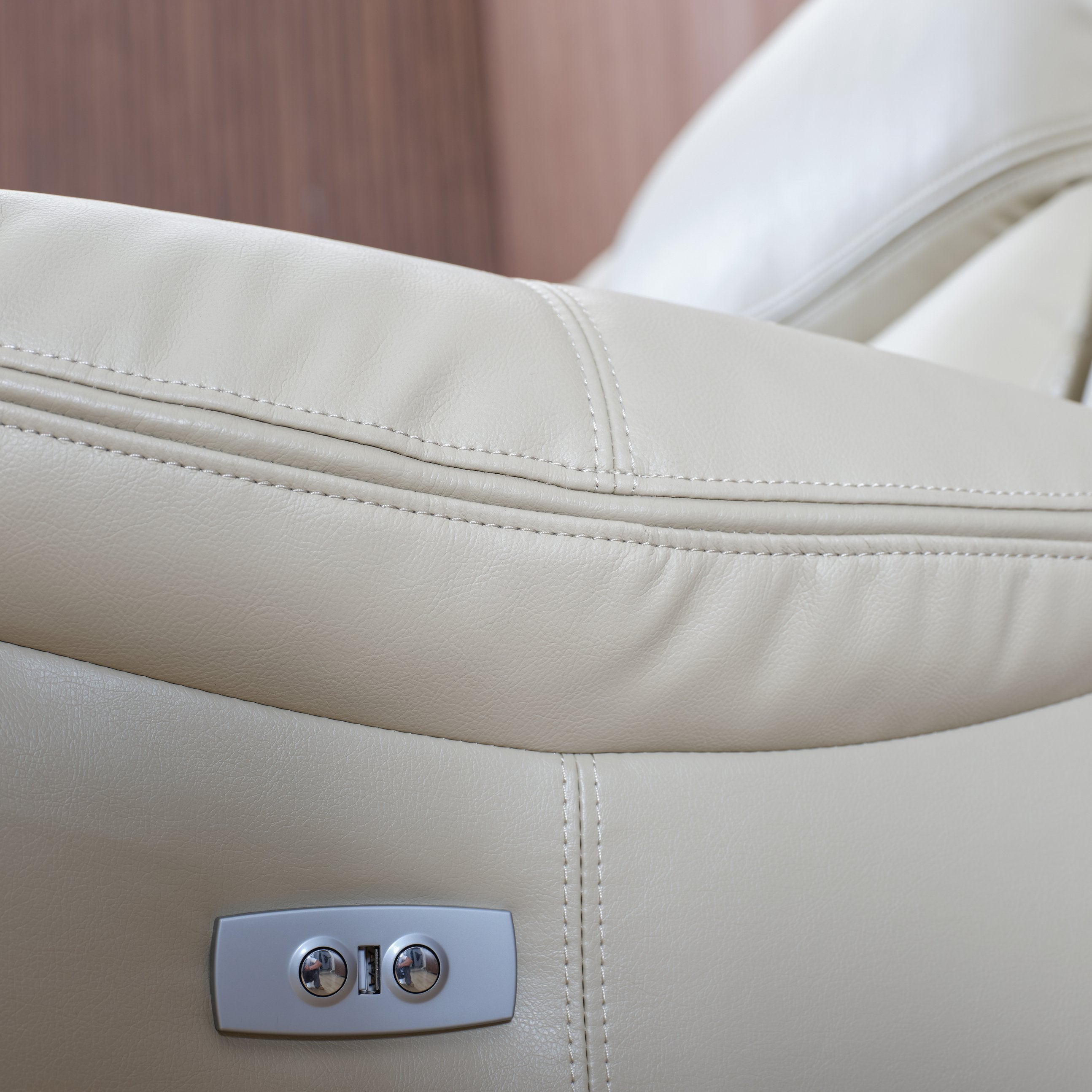 - Recline & power features: Power reclining mechanism with wall clearance requirement of 2" for full recline; integrated USB port for device charging