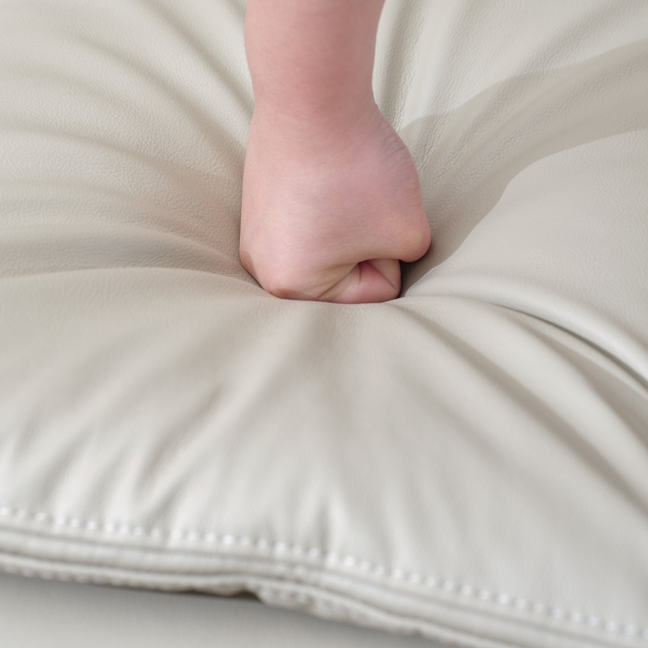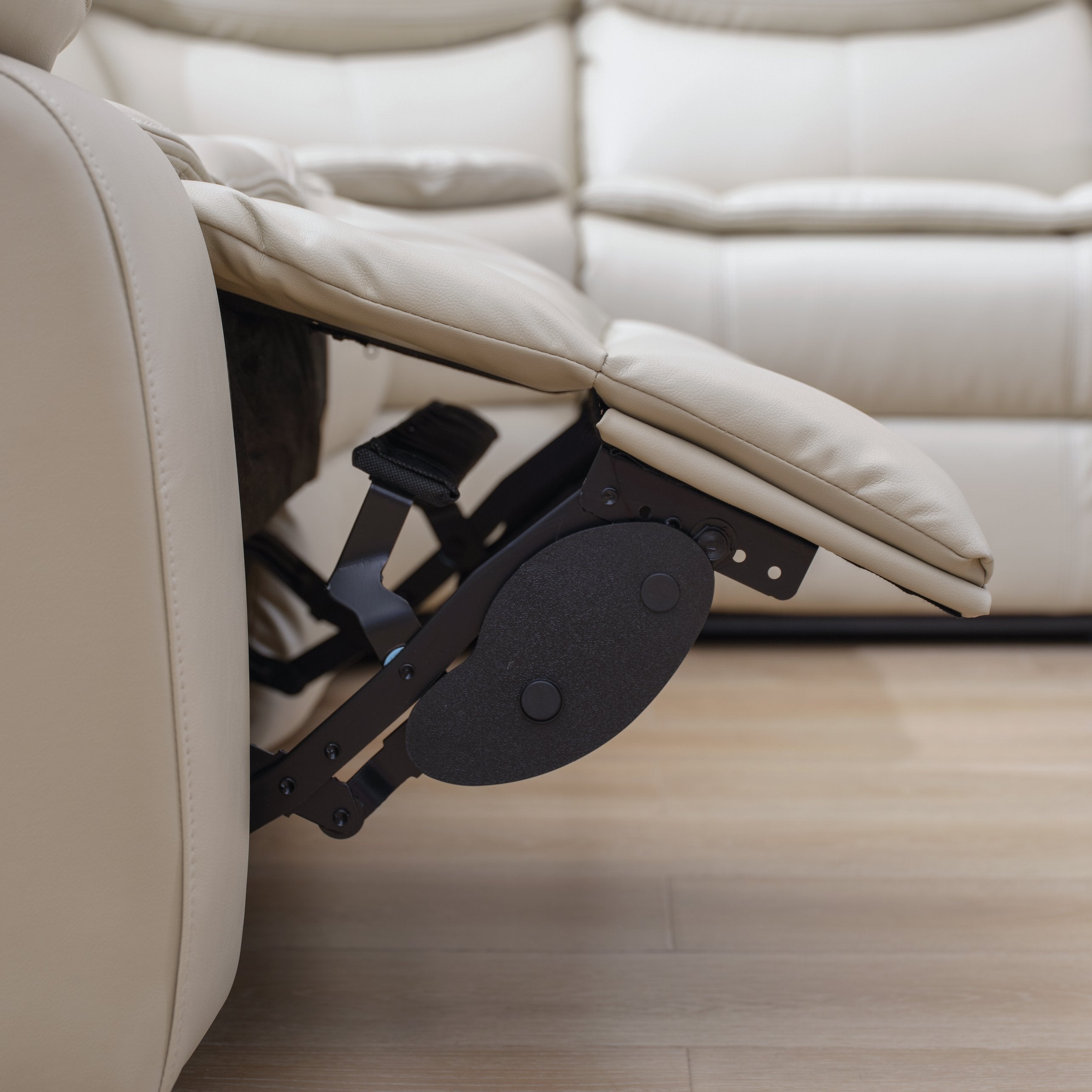 - Upholstery & comfort: Breathable leather upholstery in cream (with brown accents), foam seat fill and synthetic fiber back fill with cushion backs and pillow-top arms for added comfort
