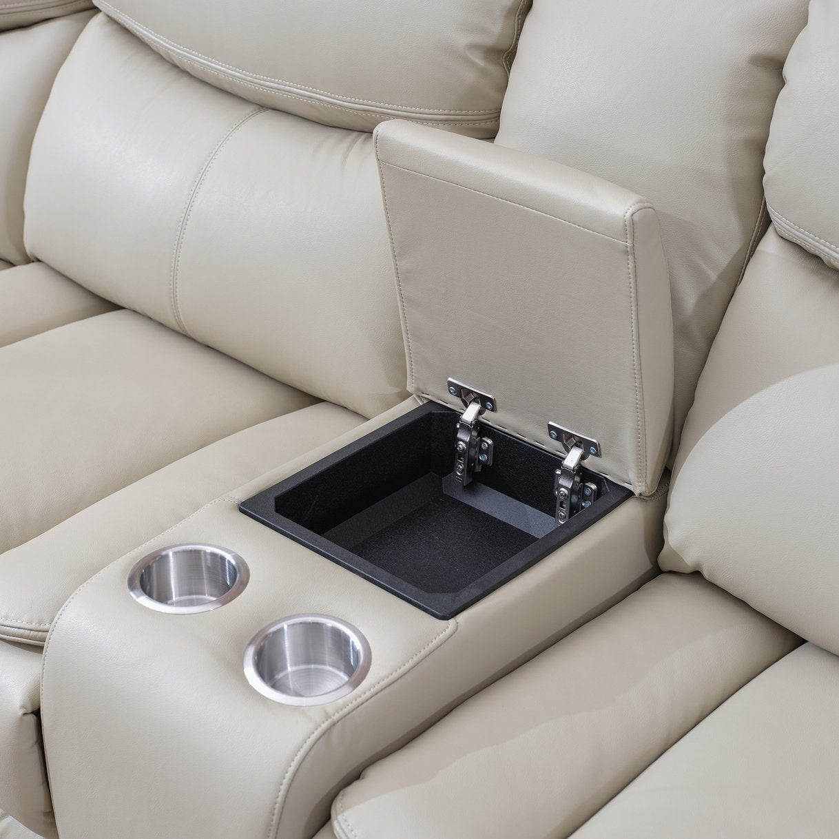 - Storage & convenience: Built-in console storage for remotes and small items; removable cushions not included