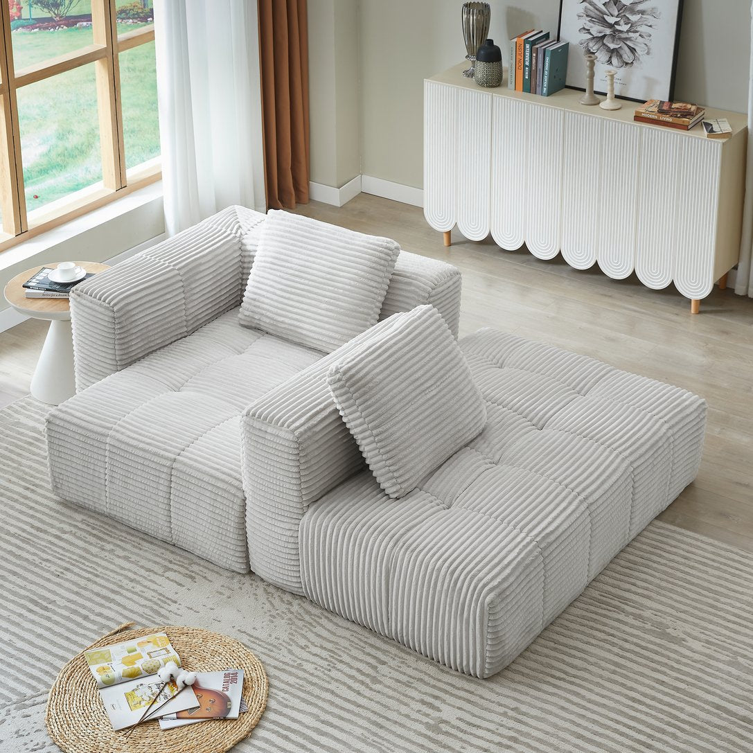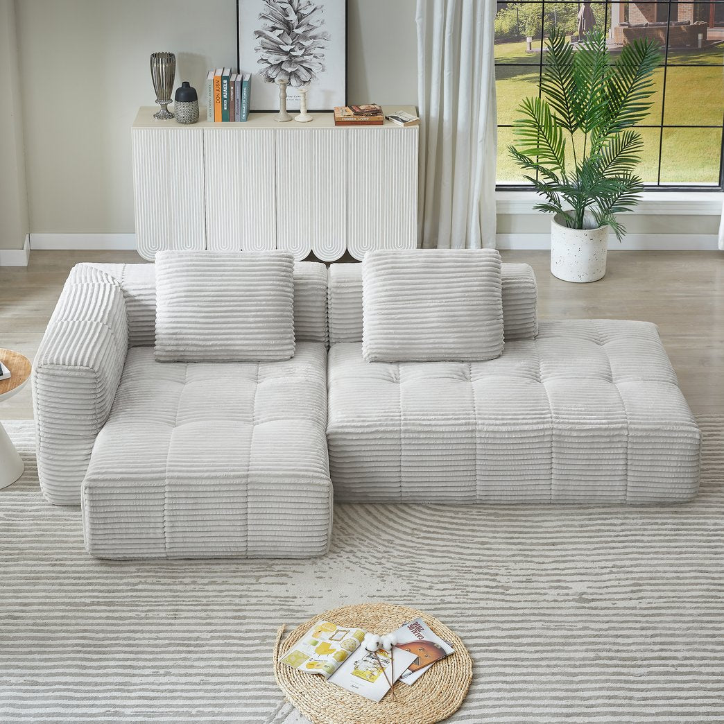 Experience cloud-like comfort and modern minimalist style with this L-shape modular sectional—designed for immediate use and effortless living. Upholstered in soft corduroy with spring-packed cushions and a chaise lounge, it delivers supportive, cozy seating for apartments, living rooms, or any space that values both comfort and clean design.