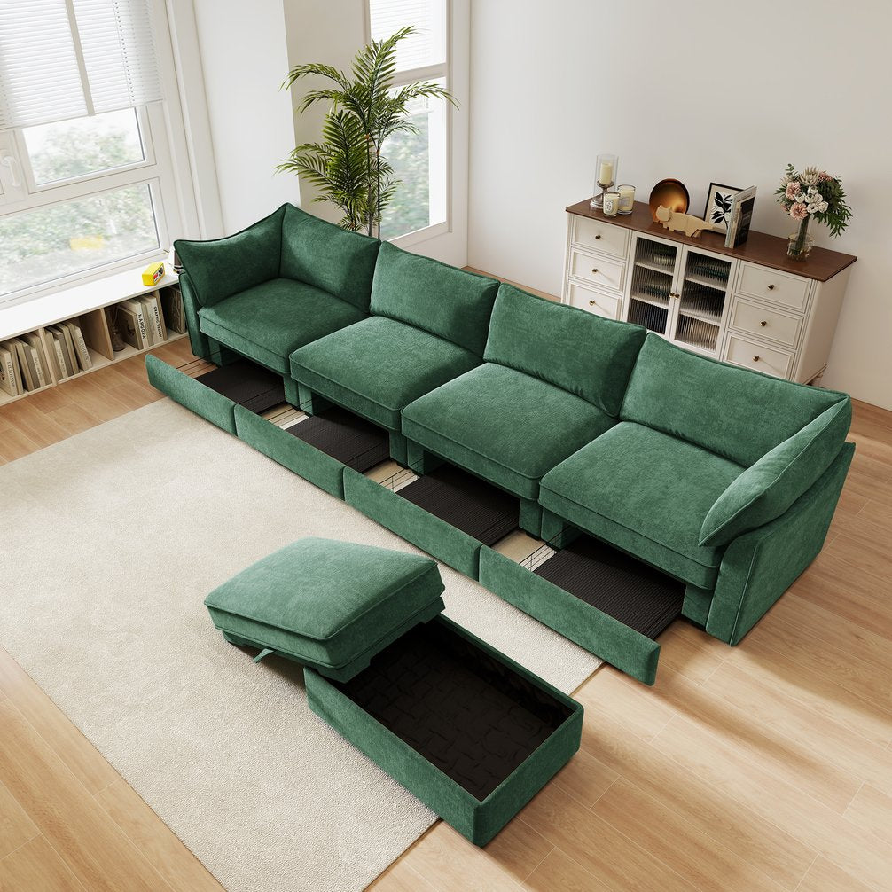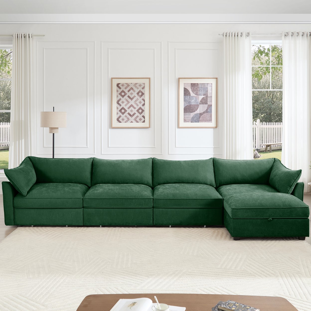 Transform your living space with this stylish chenille sectional that combines modern design, generous seating, and clever storage. The crescent-shaped armrests and wraparound back cushions create a cozy, inviting silhouette, while durable chenille upholstery ensures everyday comfort. Ideal for families or entertaining, this L-shaped 4-seater includes a movable ottoman and multiple hidden compartments to keep your room tidy without sacrificing style.