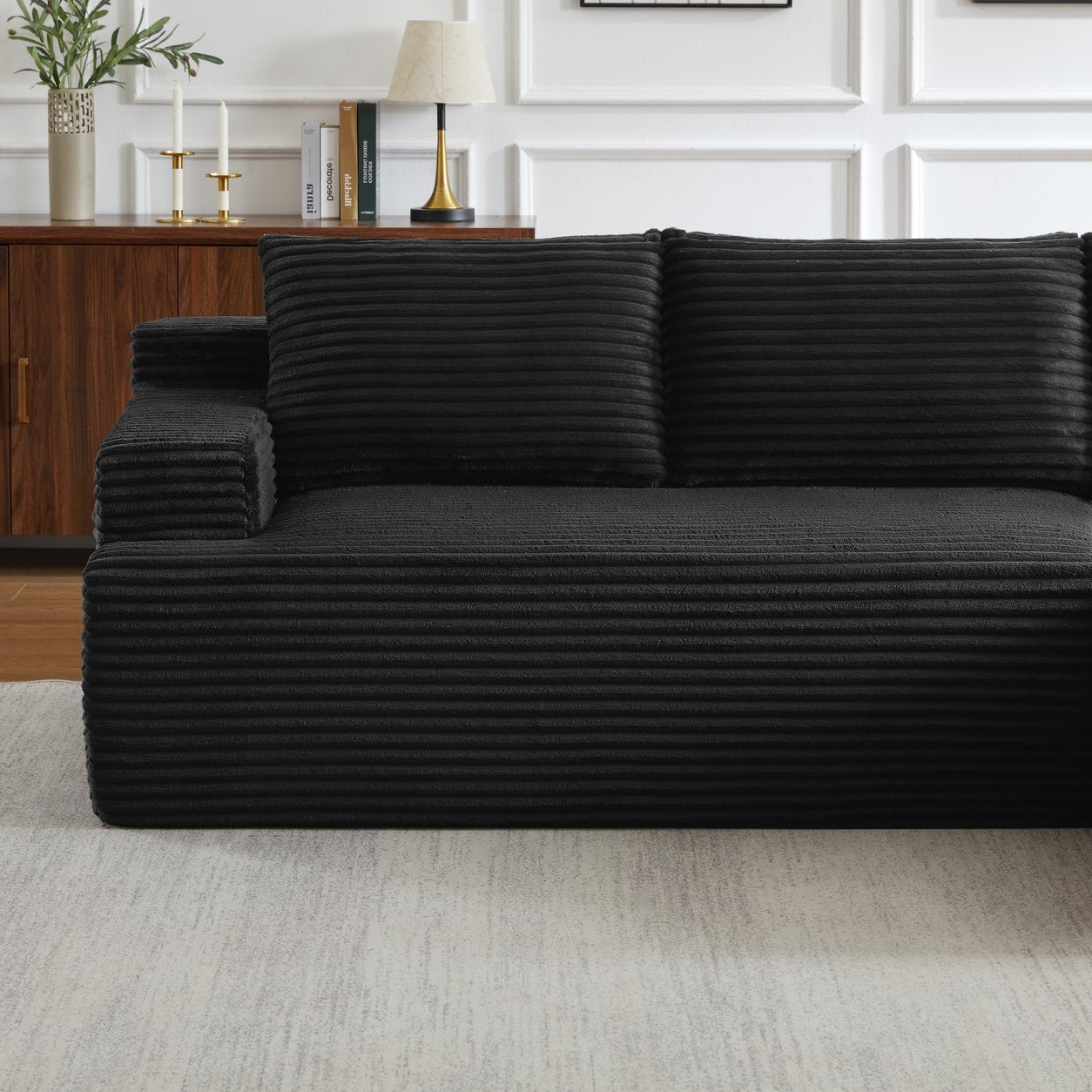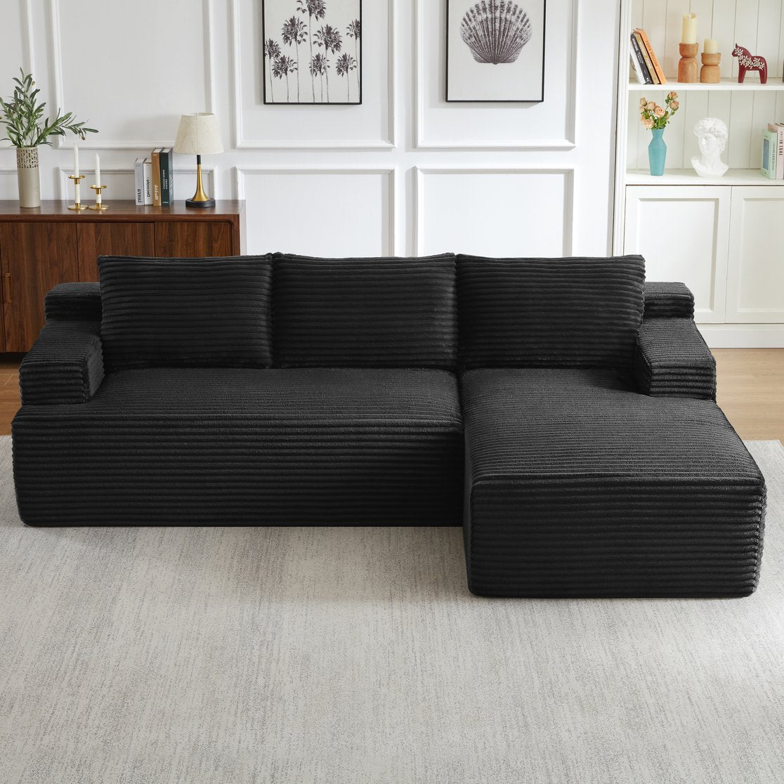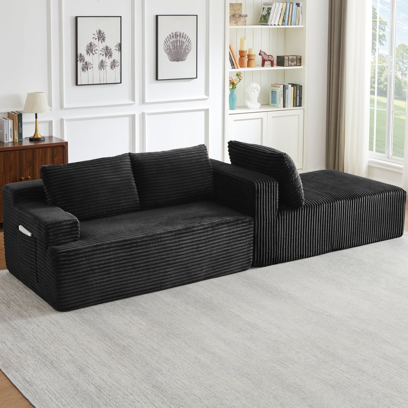 Sink into luxurious comfort with the L-shaped Cloud sectional — a deep-seat, no-assembly modular sofa designed for modern living. Upholstered in durable corduroy and built with sponge plus pocket-spring support, this versatile sleeper sofa delivers cushioned relaxation, lasting resilience, and a sleek profile that fits living rooms, bedrooms, apartments, and guest spaces alike. Ready to use right out of the box after a brief 72-hour expansion period, it’s an ideal choice for those who want immediate comfort without the hassle.