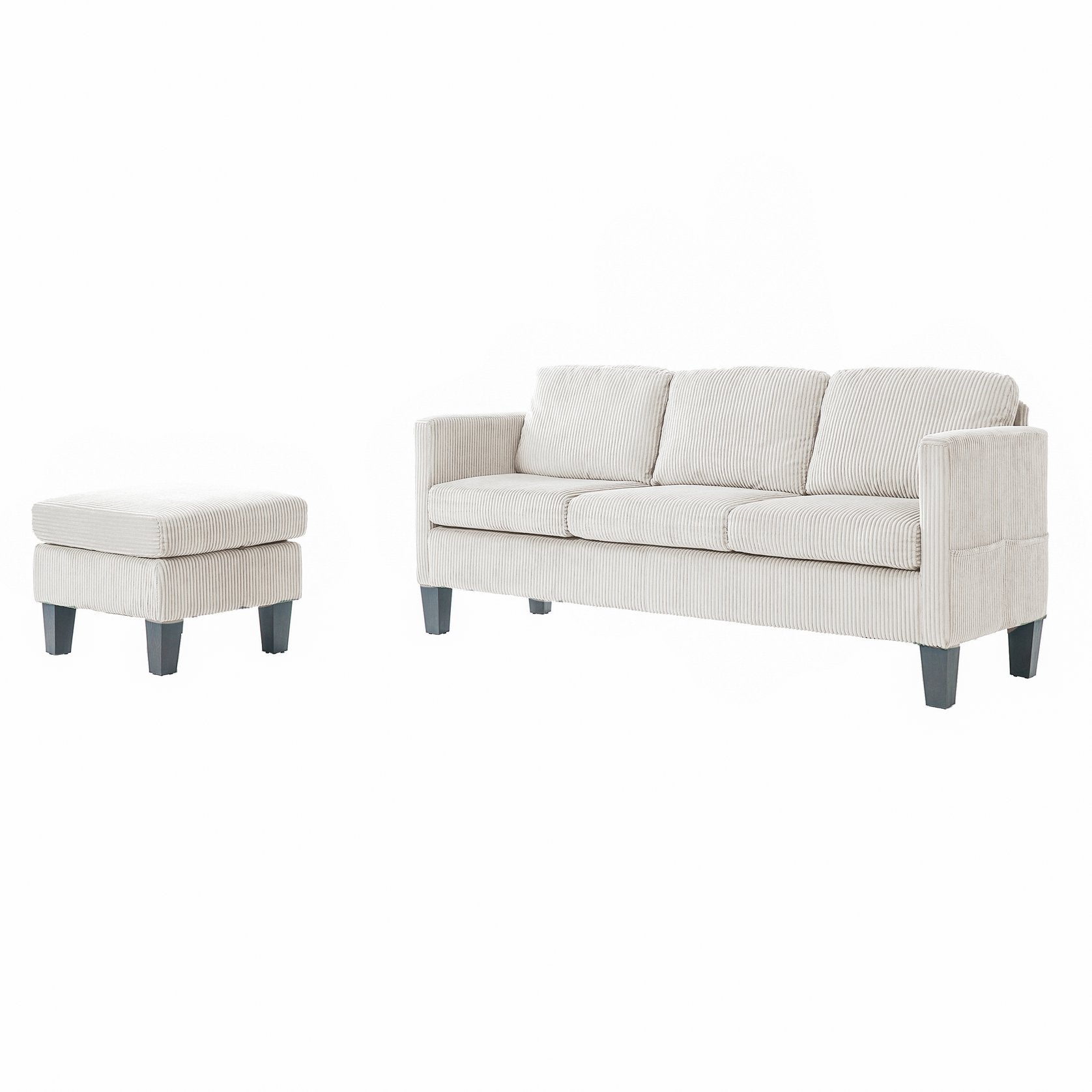 Bring modern luxury and practical comfort to your living space with this L-shaped, corduroy-upholstered sofa. Thoughtfully designed for small rooms and apartments, it combines plush cushioning with a streamlined silhouette to create a versatile seating solution for lounging, entertaining, or maximizing corner space. The elegant gray fabric and tailored finish deliver a sophisticated look while remaining easy to assemble and maintain.