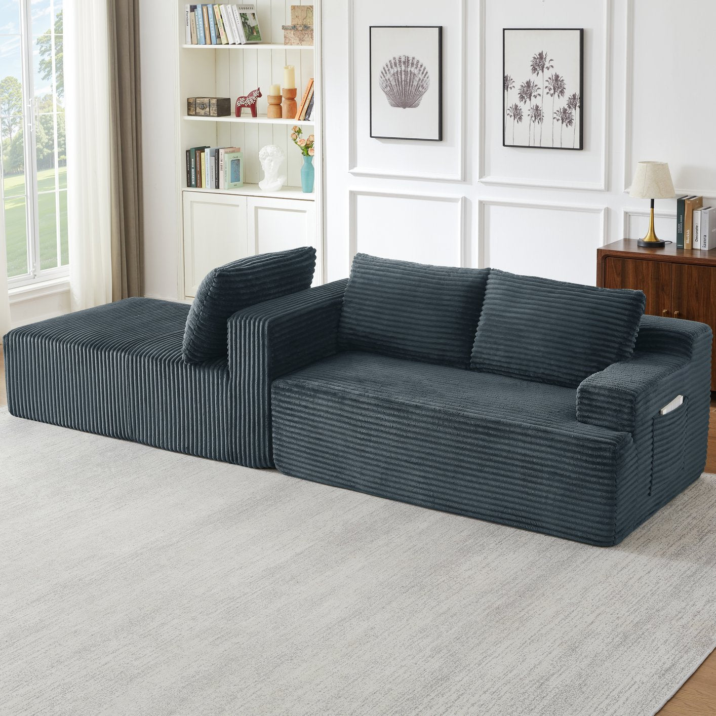 Sink into cloud-like comfort with this L-shaped sectional, designed for effortless relaxation and versatile living. Upholstered in durable dark grey corduroy, the sofa blends plush support with a stylish, modern silhouette—perfect for living rooms, apartments, guest rooms, or bedrooms. Ready to use straight from the box with no assembly required, it expands to its full form within 72 hours and provides deep seating made for lounging, naps, and everyday family life.
