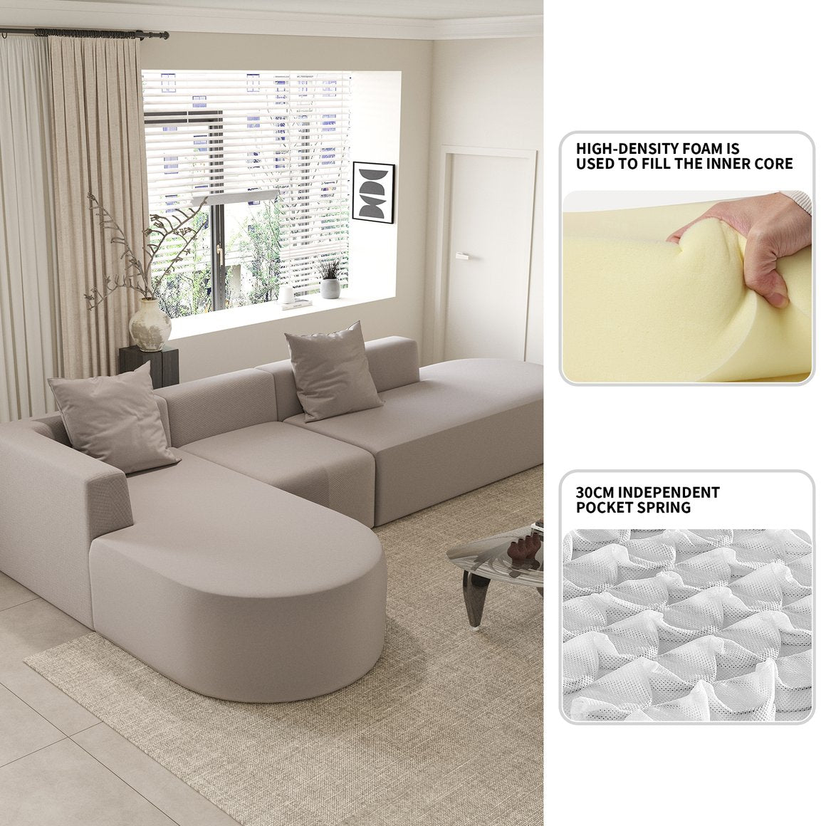 Sink into cloud-like comfort with this camel corduroy 5-seater modular sectional designed for modern living. Its boneless, deep-seat construction offers a plush, supportive surface for lounging, watching movies, or accommodating overnight guests, while the movable ottoman lets you customize seating and sleeping configurations—no assembly required.