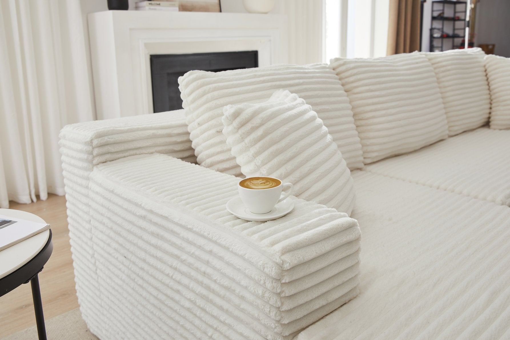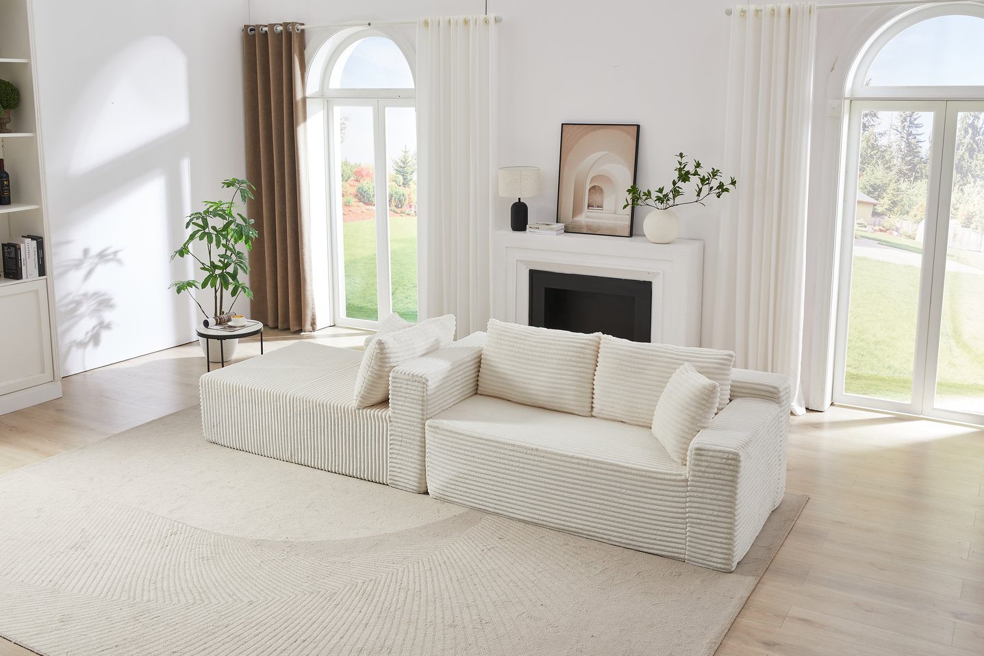Sink into cloud-like comfort with this L-shaped modular sectional—designed for effortless relaxation and instant use. The plush corduroy upholstery and sponge-plus-pocket-spring support deliver a soft yet supportive seating experience, while the modular layout fits living rooms, bedrooms, and apartments. No tools or assembly required: unpack, allow to expand, and enjoy a cozy sleeper-ready seating solution that balances style, durability, and everyday practicality.