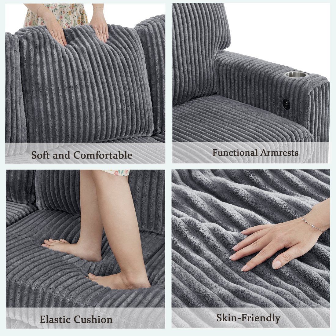- Storage and USB Charging: The L-shaped sofa offers plenty of storage space, making it easy to organise everyday items and keep the living area tidy. Cup holders on the armrests are designed for convenience. Built-in USB and Type-C ports make it easy to charge devices, ideal for relaxing and entertaining