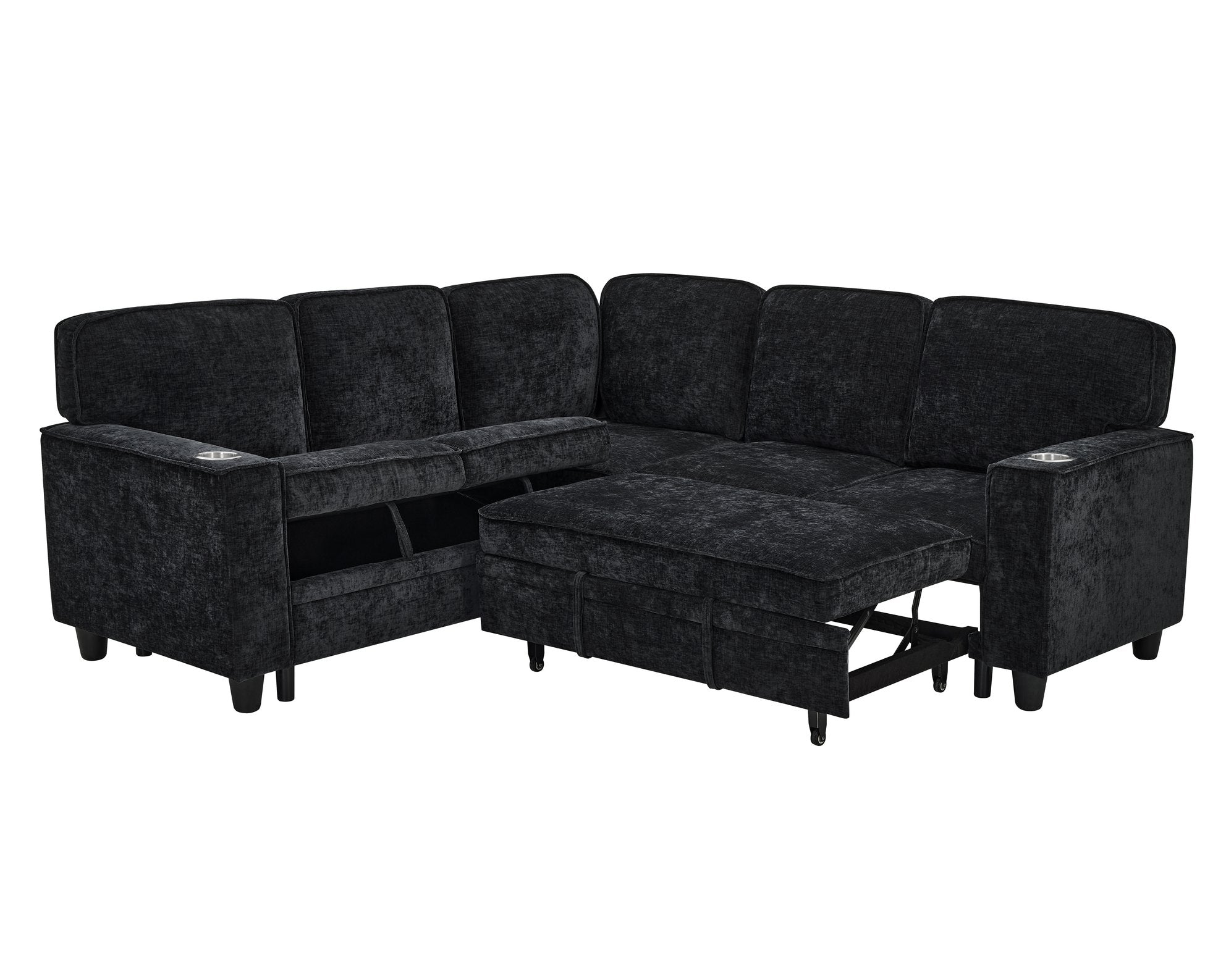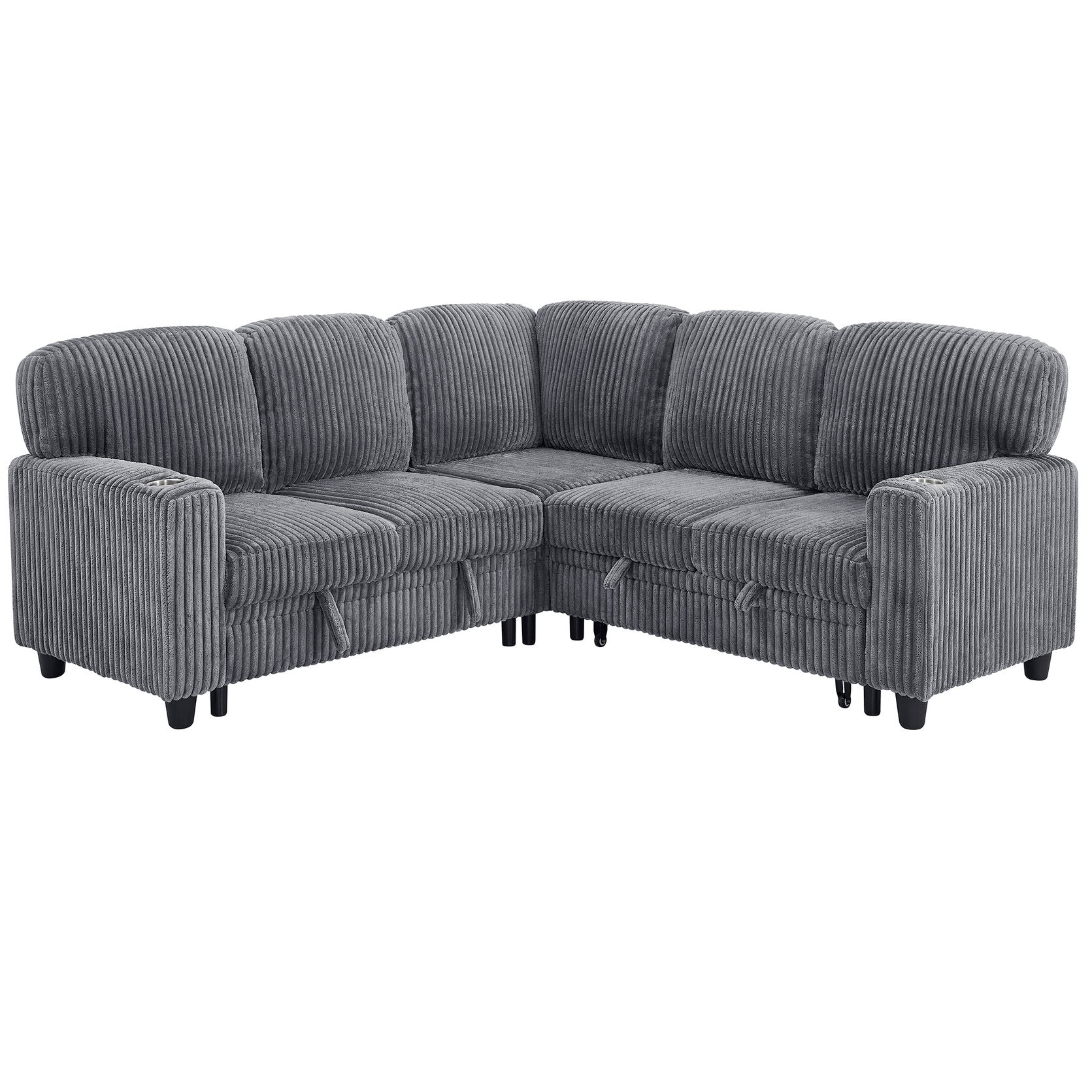 Enjoy flexible seating and overnight comfort with this L-shaped sectional designed for modern living. Thoughtfully built for small spaces, it combines a pull-out sleeper, hidden storage, convenient charging, and durable upholstery to create a multi-functional centerpiece for living rooms, apartments, and guest-ready homes.