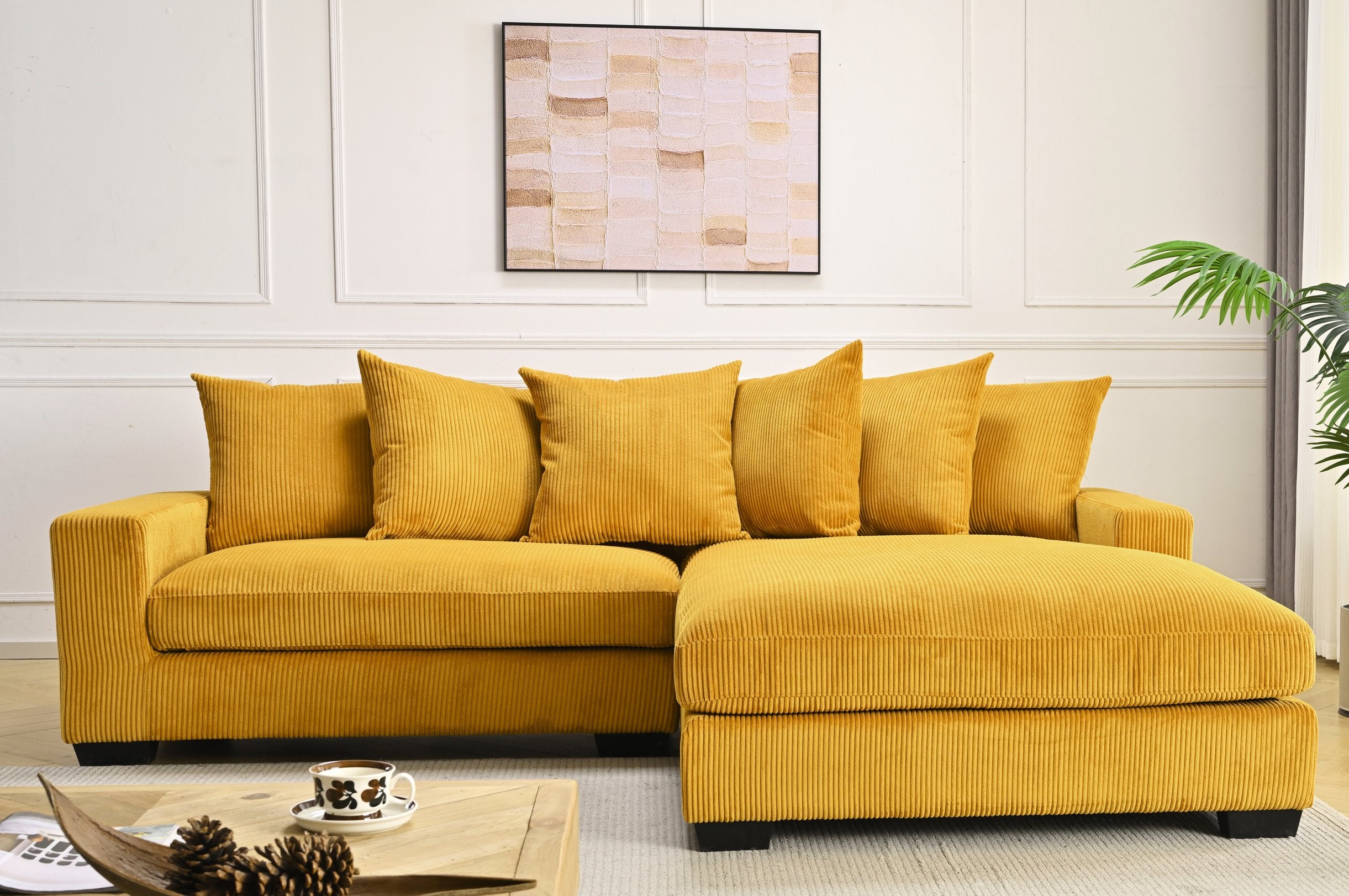 Sink into luxurious comfort with this oversized L-shaped sectional, designed to balance contemporary style with family-ready durability. Upholstered in soft corduroy, the right-facing chaise invites lounging, entertaining, and everyday living while the clean lines and neutral ginger color elevate any modern interior.