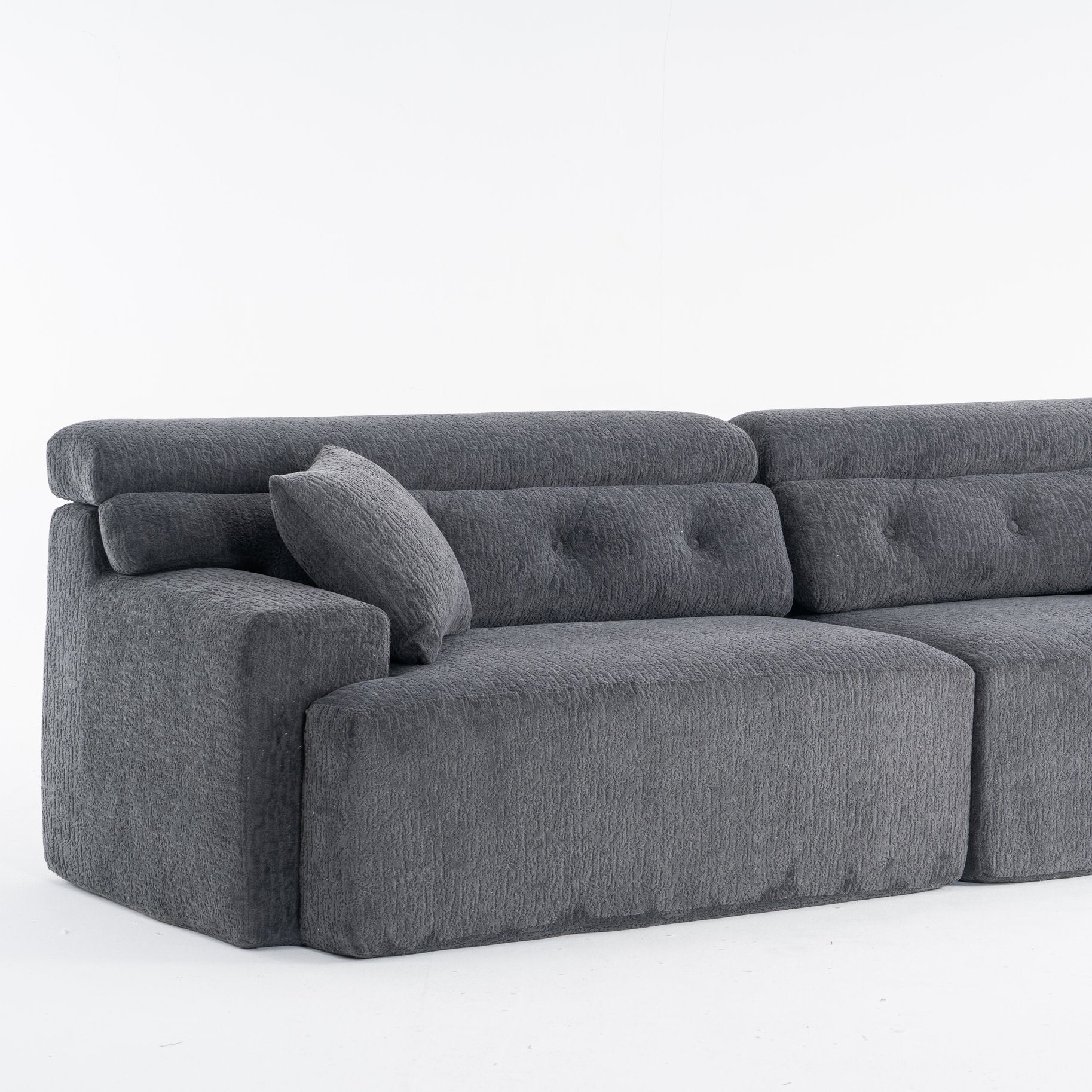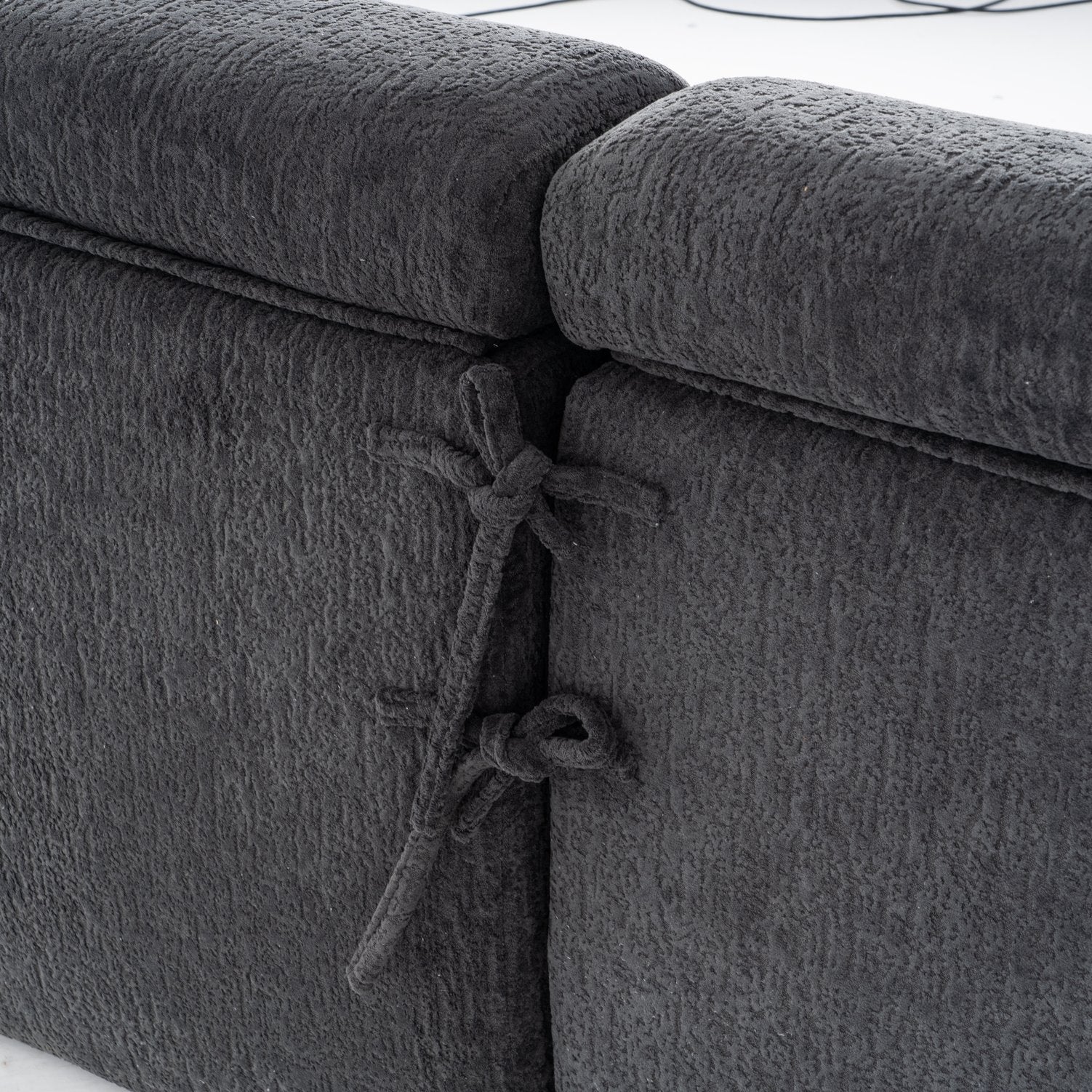 Transform your living space with this modern 4-seater compression sofa that combines contemporary style, durable construction, and everyday comfort. Upholstered in dark gray wood-grain chenille fabric, the modular L-shaped design fits seamlessly into apartments, living rooms, or entertainment areas while providing generous seating and a refined look.