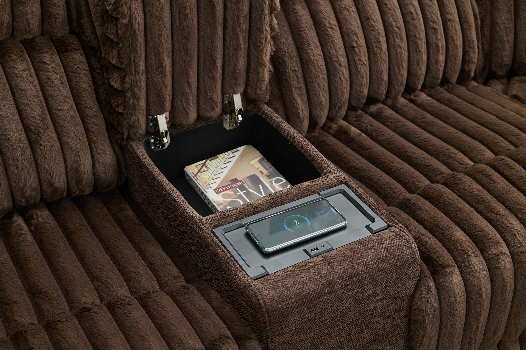 - Built-in USB, Type-C & Wireless Charging:The center storage console also features a Wireless Charging pad, allowing for a clutter-free and convenient charging experience. Stay connected with integrated USB and Type-C charging ports on both armrests, keeping your devices powered at all times.