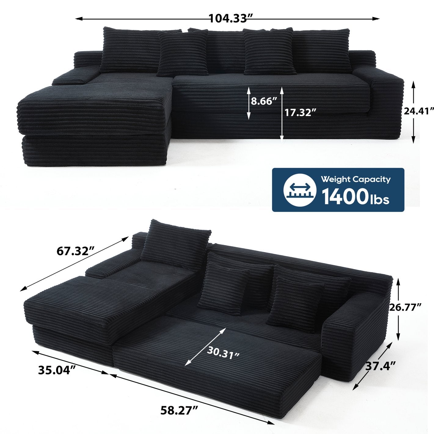 Bring home a versatile centerpiece that combines space-saving convenience with cloud-like comfort. This modular, L-shaped compression sofa expands from vacuum-packed boxes into a plush sectional or a full-size sofa bed in seconds, making it ideal for apartments, dorms, bedrooms, and home theaters. Upholstered in durable corduroy and built on a sturdy industrial steel frame, it delivers both cozy support and long-lasting performance for everyday lounging and overnight guests.