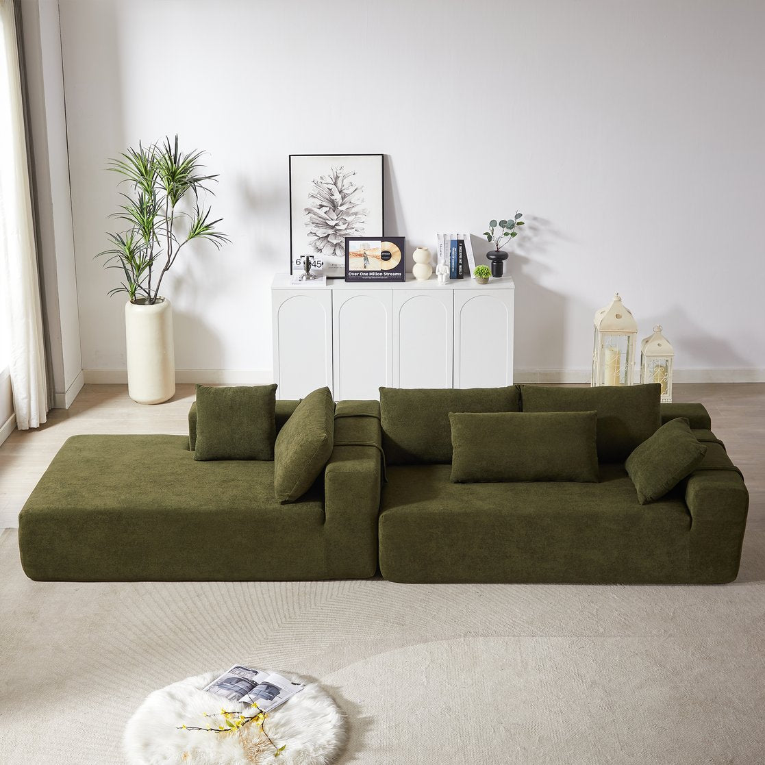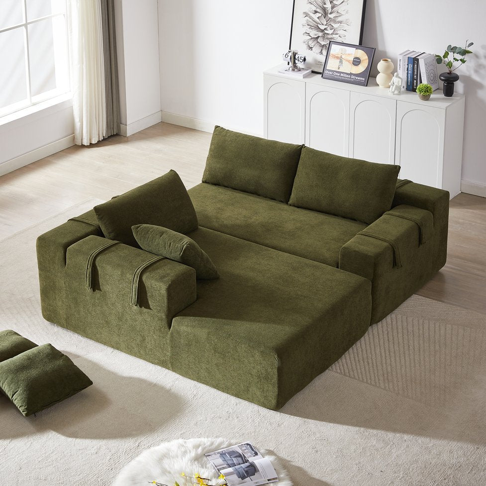 Experience laid-back modern comfort with this modular chenille sectional sofa—designed for flexible living spaces and effortless style. Its soft chenille upholstery, foam-filled seats, and supportive polyester backs create a cozy seating area for family time or entertaining, while the modular components let you configure the layout to suit your room. Delivered vacuum-compressed for convenient shipping, the sofa expands to full shape within ~72 hours.