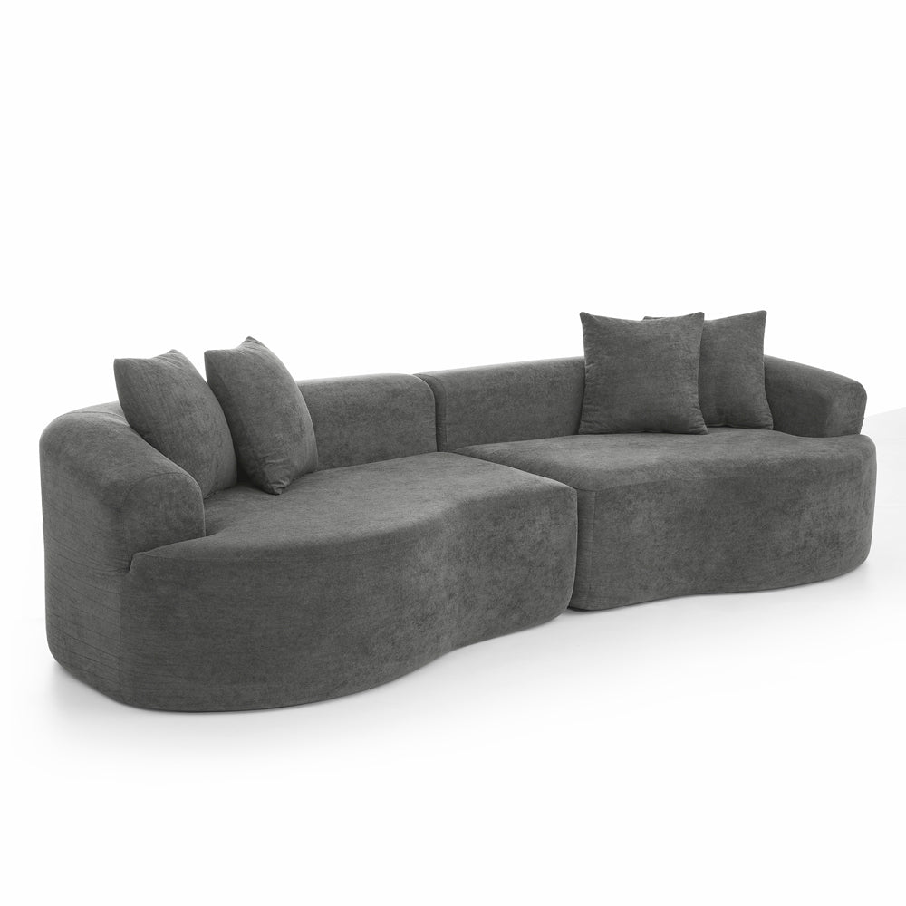 Bring modern comfort and sculpted style to your living space with this 4-seater curved sectional. Upholstered in soft, durable chenille, the sofa combines a minimalist silhouette with generous seating and supportive foam cushioning—perfect for family rooms, lounges, or contemporary office settings. Designed for immediate use with no assembly required, it delivers a finished, high-end look while maximizing comfort and practical durability.
