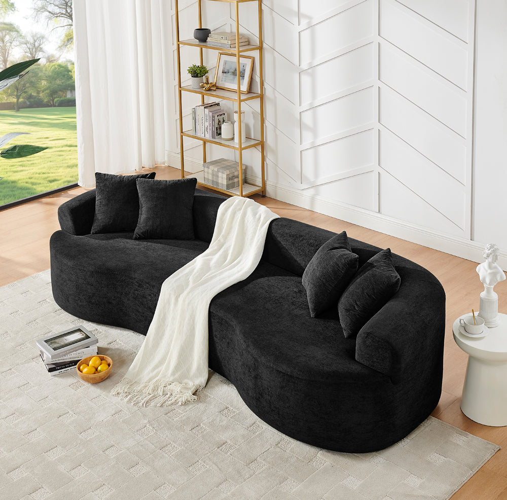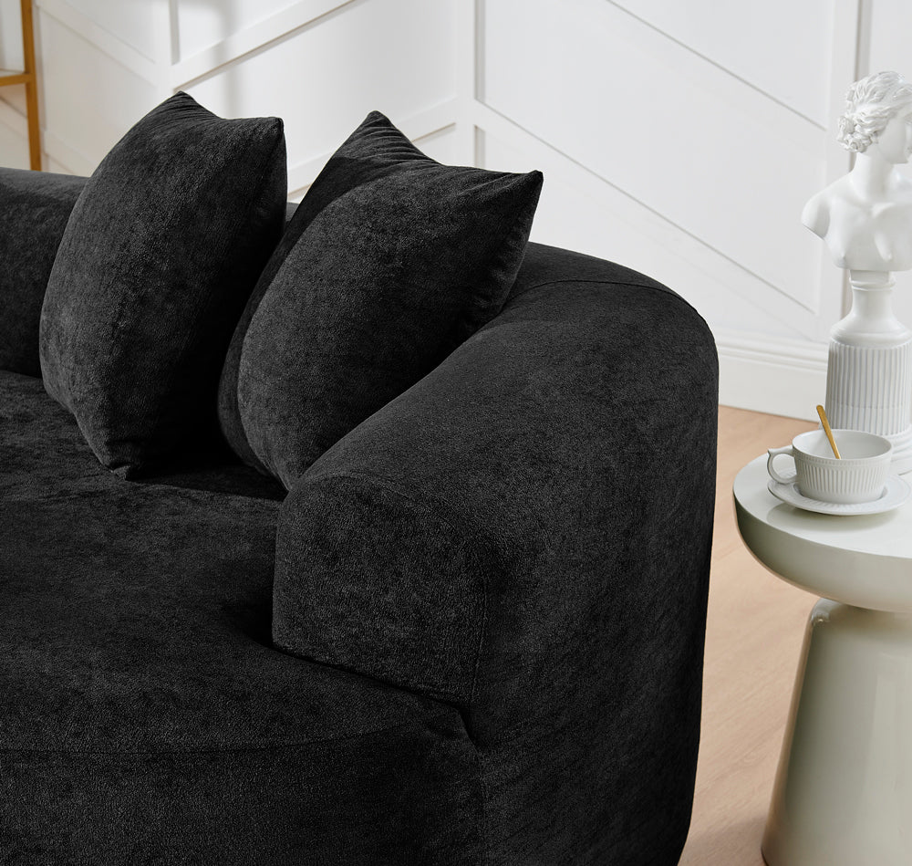 This elegantly curved 4-seater sectional blends minimalist modern design with plush chenille comfort, making it a striking yet versatile centerpiece for contemporary living rooms, offices, or lounge spaces. With no assembly required, it arrives ready to use and offers a supportive foam core and clean-lined silhouette that complements a variety of decor styles while maximizing seating for family and guests.