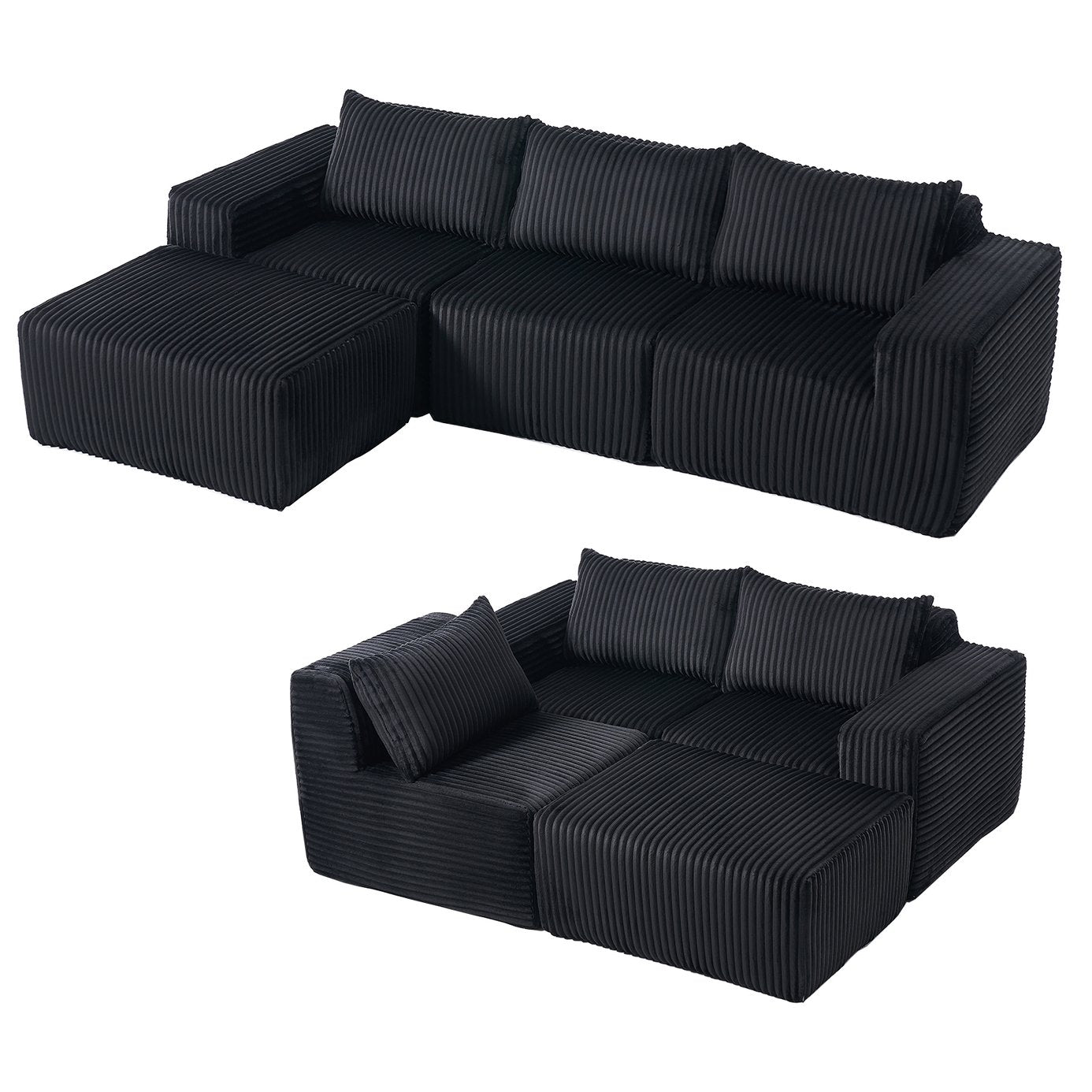 - Versatile Modular Sectional Sofa: Enjoy maximum flexibility with our modular sectional sofa, designed for easy customization. The minimalist L-shaped design optimizes space when placed against a wall. Consisting of two stylish pieces, this sectional set can be configured to suit your preferences, offering unparalleled customization options.