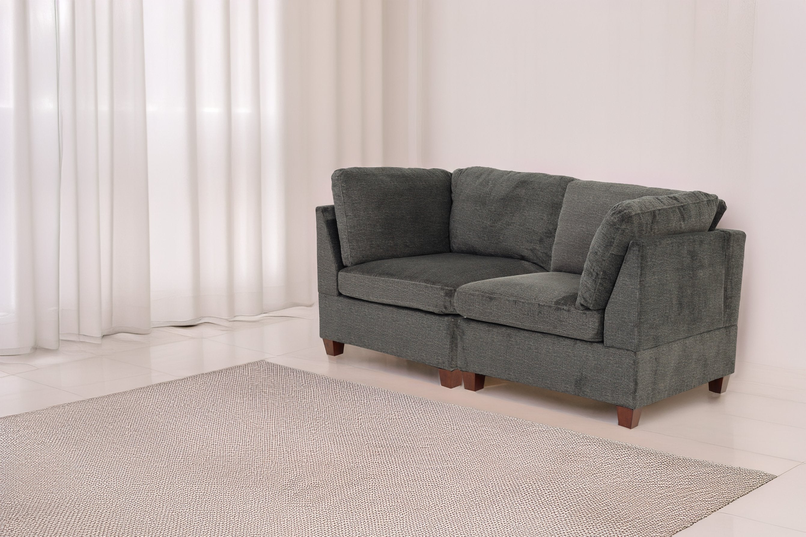 Refresh your living space with this versatile 2-piece modular set in soft gray chenille. Designed for both style and comfort, the pieces can be arranged to suit your room layout—use them separately as seating or combine them to create a sectional. The durable wood frame and plush chenille upholstery offer long-lasting support and a cozy feel, while the neutral gray complements a wide range of décors.