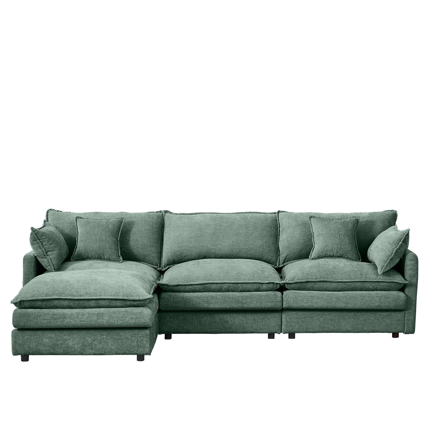 Sink into comfort and contemporary style with this modular L-shaped sectional designed for modern living. Upholstered in soft, breathable chenille, the sofa combines memory foam and spring support for a plush yet supportive feel. Its modular design with a removable ottoman lets you create a sofa, chaise, or extra seating arrangement that fits your space and lifestyle, while sturdy solid wood framing ensures lasting durability.