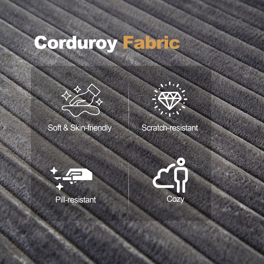 - Plush corduroy upholstery: Soft, textured fabric with a subtle sheen that feels warm and luxurious year-round while resisting everyday wear.